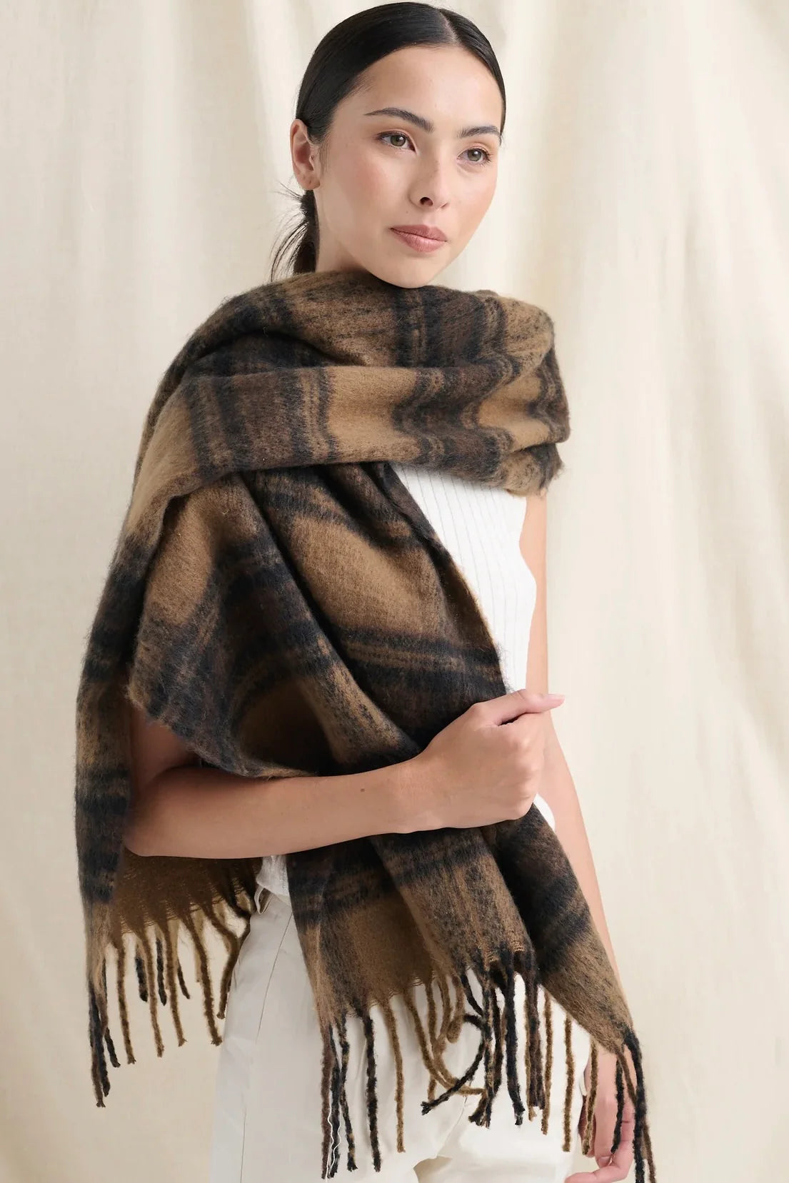 Alya Brown Check Scarf