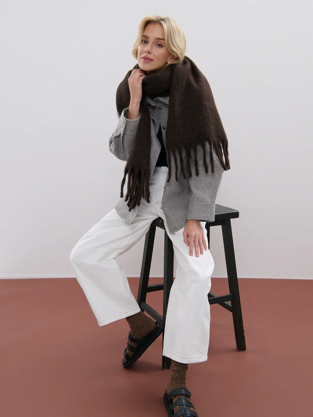 Betty Plain Wool Scarf (Brown)