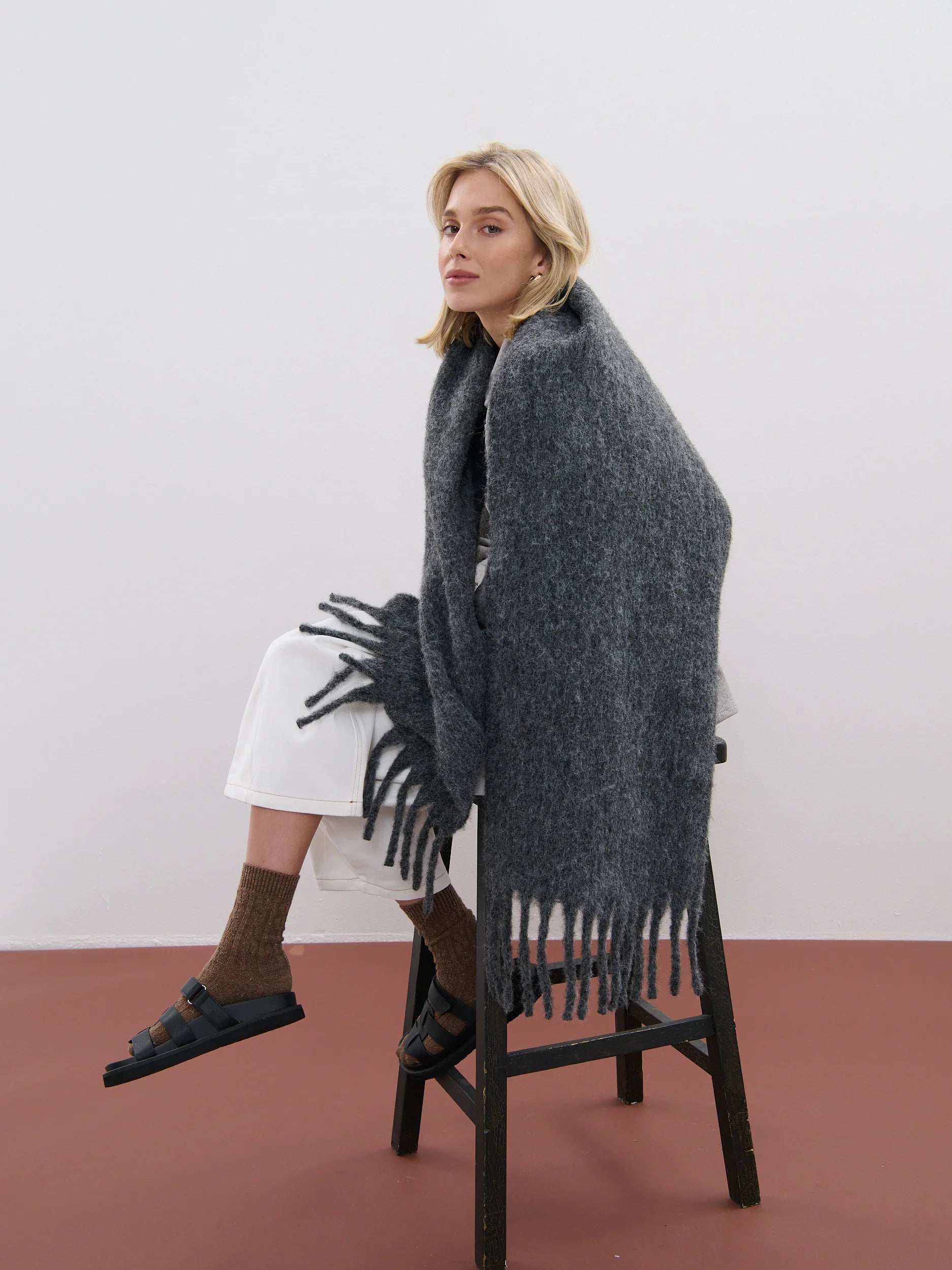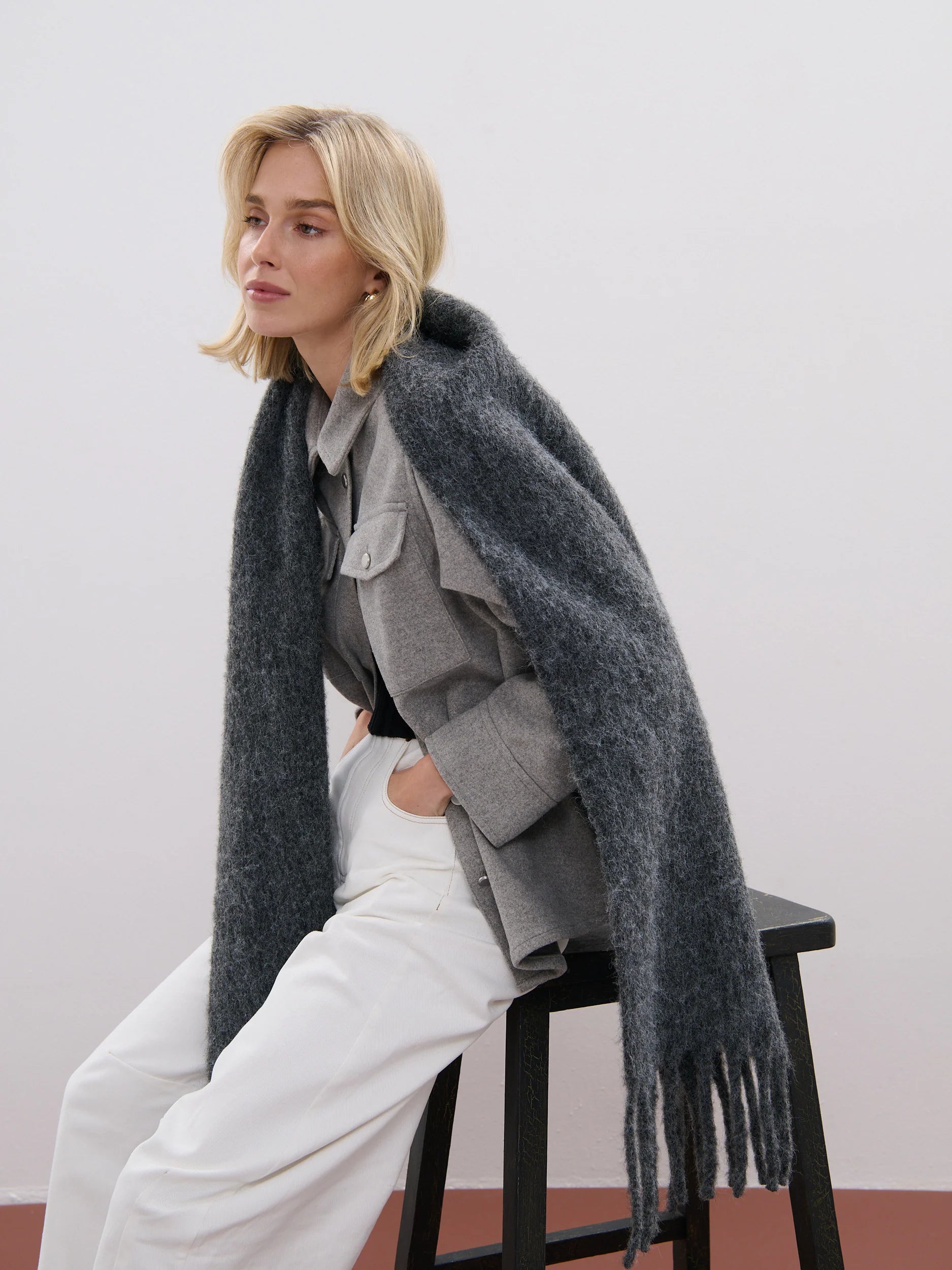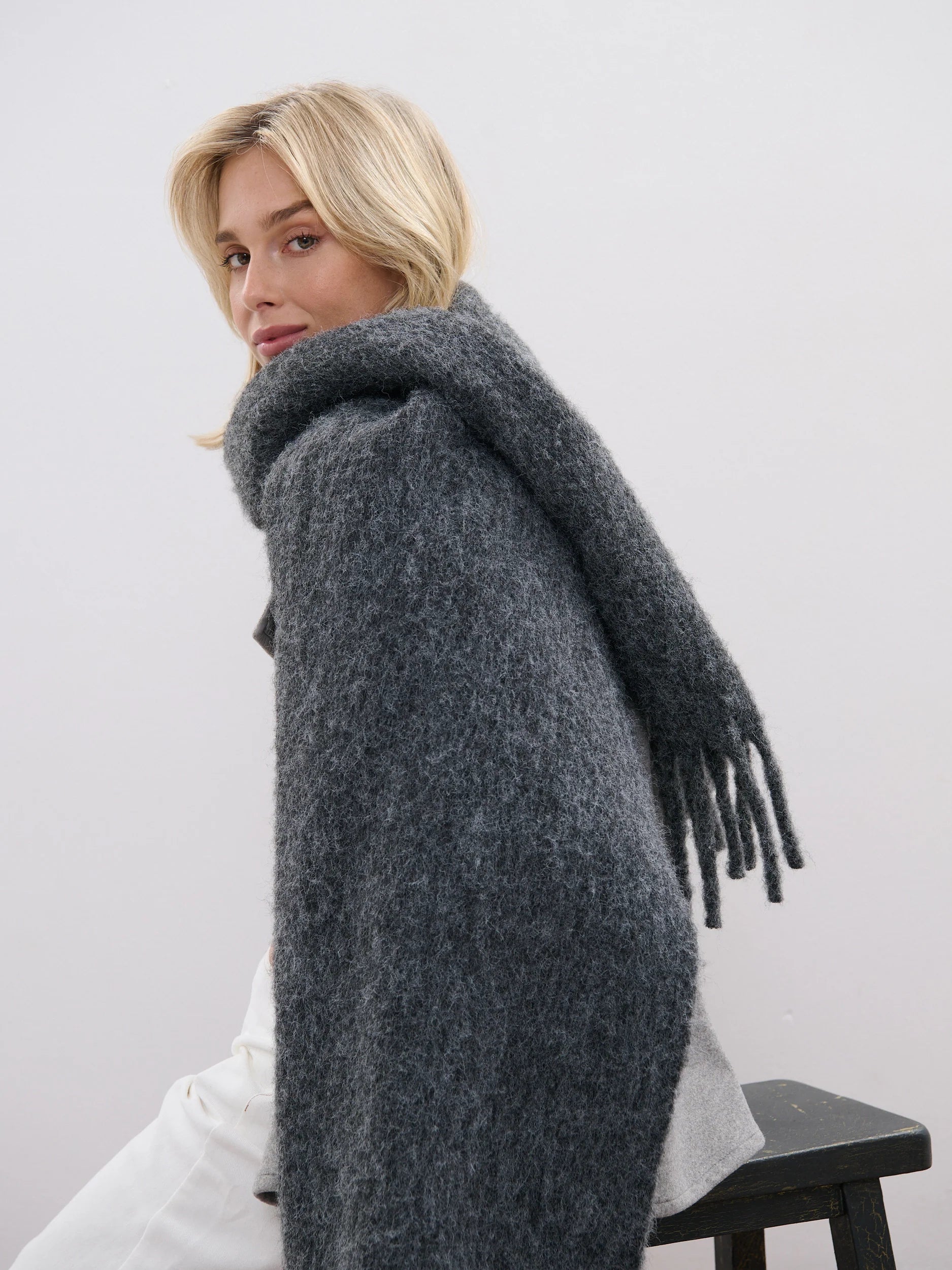 Betty Plain Wool Scarf (Charcoal)