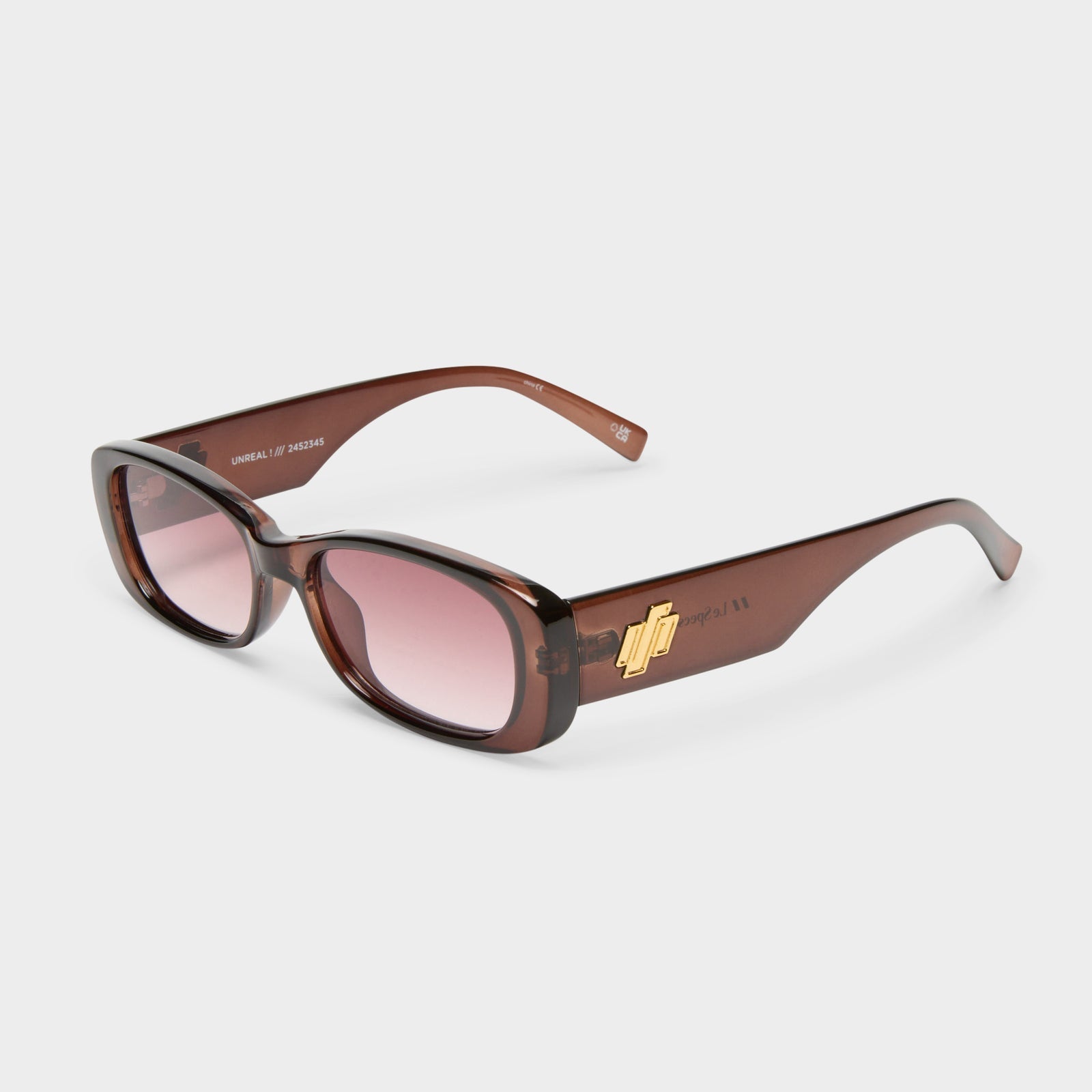 Designed with a '90s supermodel vibe, our iconic UNREAL! rectangular sunglasses are highlighted by a bold frame and thick temples. With a comfortable fit and narrow profile, this piece features luxurious gold vintage hardware on each temple.