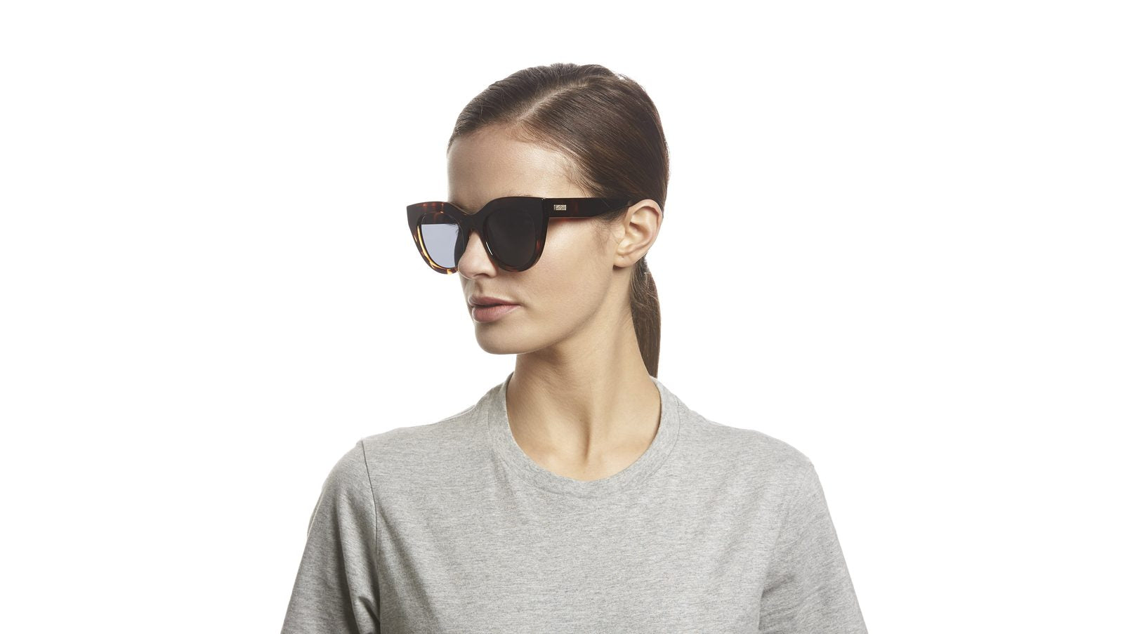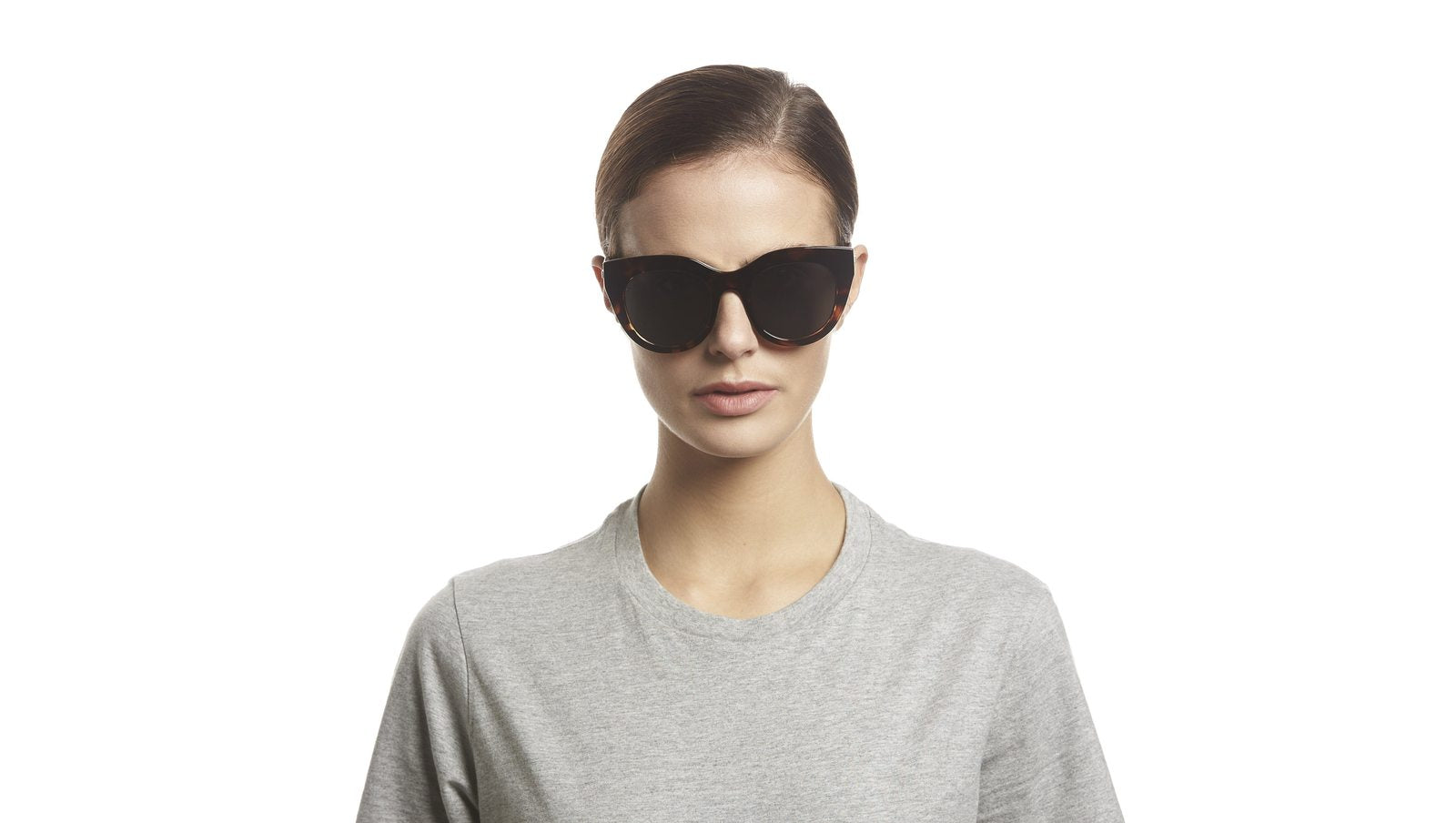 A favourite of Meghan Markle and Olivia Palermo, the Air Heart in tortoise is an iconic Le Specs style. With proportions reminiscent of a cat eye, the style is designed with a thick tort frame and luxurious metal top bar inlay, then fitted with premium zero base smoke flat lenses. The perfect sunglass to suit all face shapes.