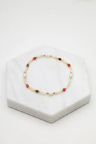 The Monique Bracelet – Blush is a beautifully crafted piece featuring a mix of soft blush-toned beads paired with lustrous freshwater pearls. This elegant combination creates a refined yet effortless look, perfect for everyday wear or special occasions.