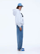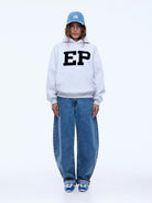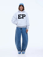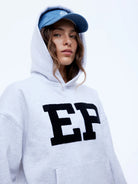 The EP Hoodie is made from brushed cotton-rich fleece in white marle with a relaxed oversized silhouette. Finished with boucle contrast print and embroidered detailing, this graphic hoodie delivers confident, elevated street appeal.