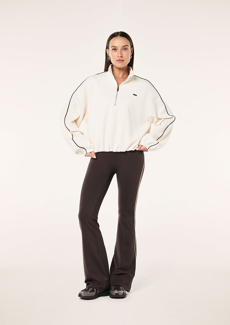 - Scuba-Like Fleece Fabrication In Our Relaxed Fit Zip Thru Contrast Piping Detail