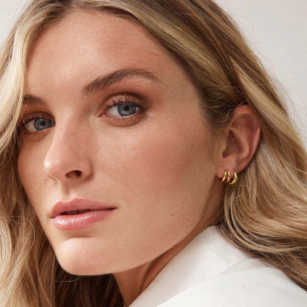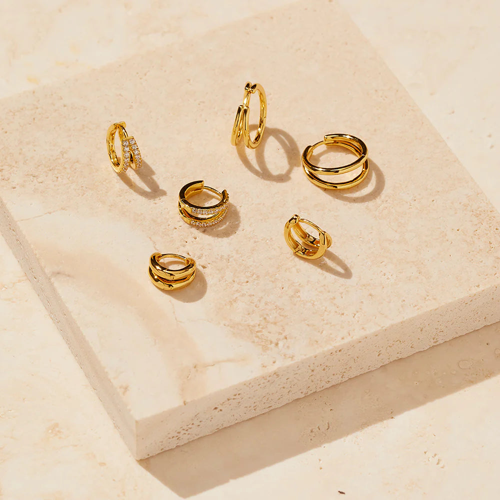 Annika Sleepers feature a double hoop design and have a snug fit. The earrings are the perfect accessory for any occasion, offering a flattering and comfortable fit. With beautiful gold tones and a unique design, Annika Sleepers are the perfect addition to any wardrobe. Wear or their own or as a second earring.