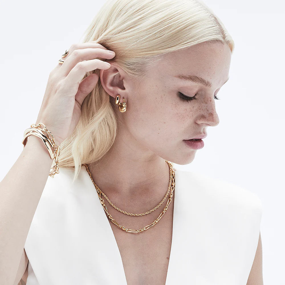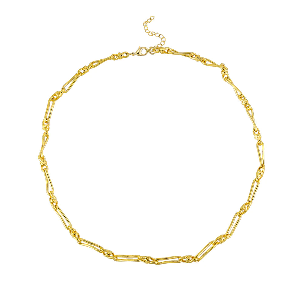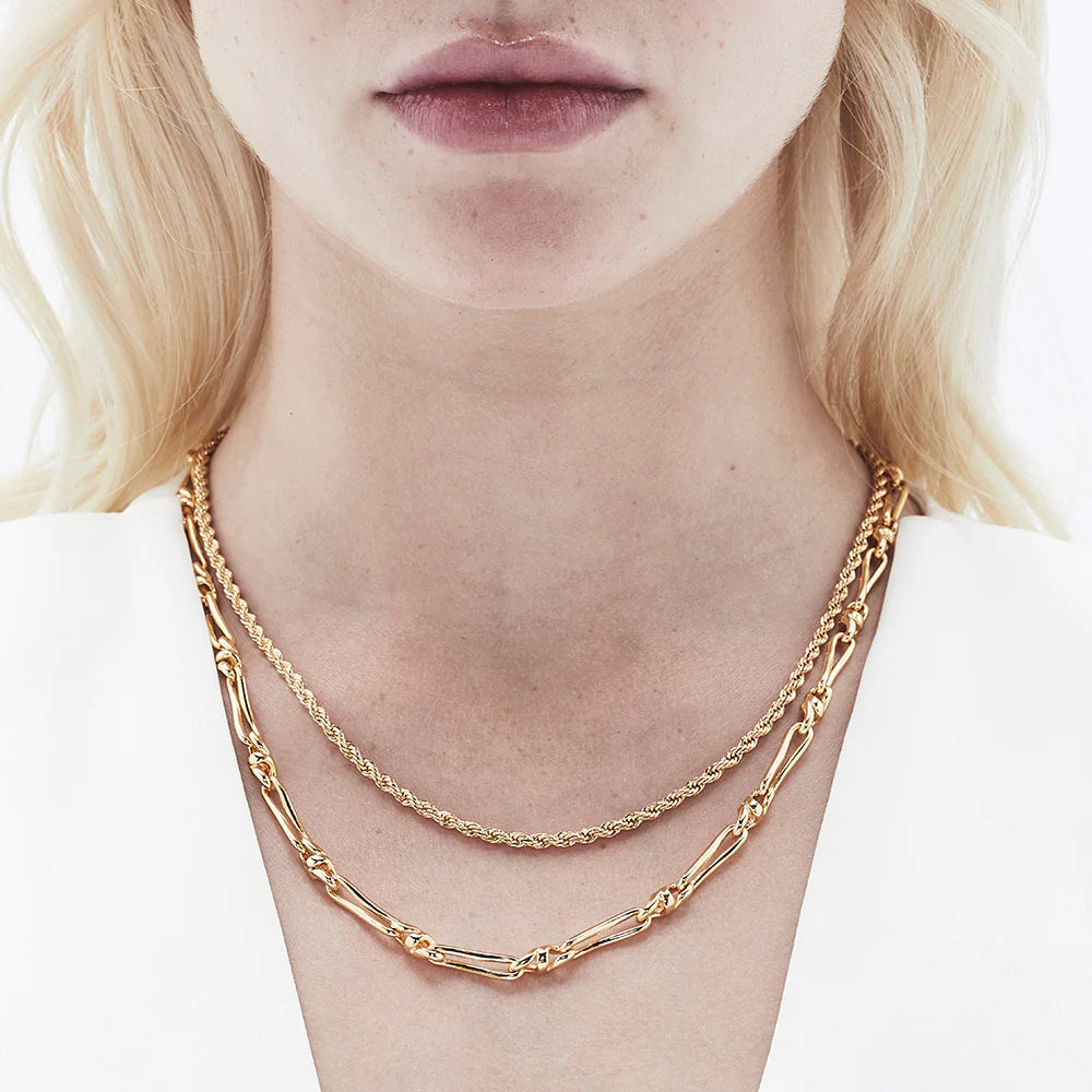 The Cecile Chain Necklace is crafted with a mixed chain in a gold-plated finish. This modern design is perfect for both formal and casual settings. Layer it with other necklaces for a unique look or make a statement with it as a standalone piece.