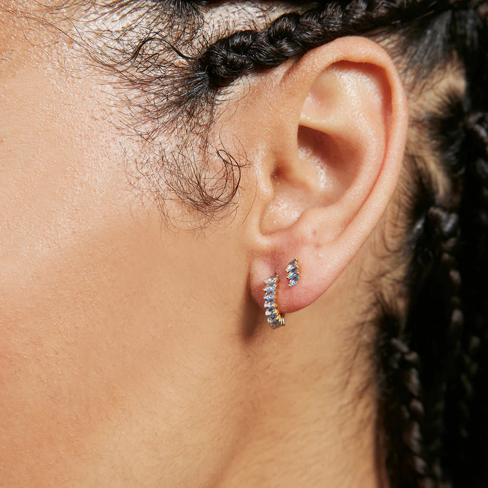 The Peggy Sleepers feature a row of blue crystals . A great way to add a touch of luxe to any outfit.
