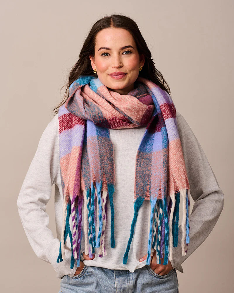 Chase away the chill in dreamy shades of pastels with our Purple Valmorel Scarf. This ultra-soft accessory features a cool-toned palette of bright coral, icy lilac, and beautiful mauve in a bold check pattern—perfect for adding a serene splash of colour to your winter wardrobe. Finished with playful fringe and a plush texture, it’s as stylish as it is snuggly.