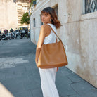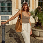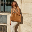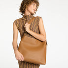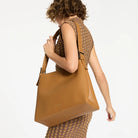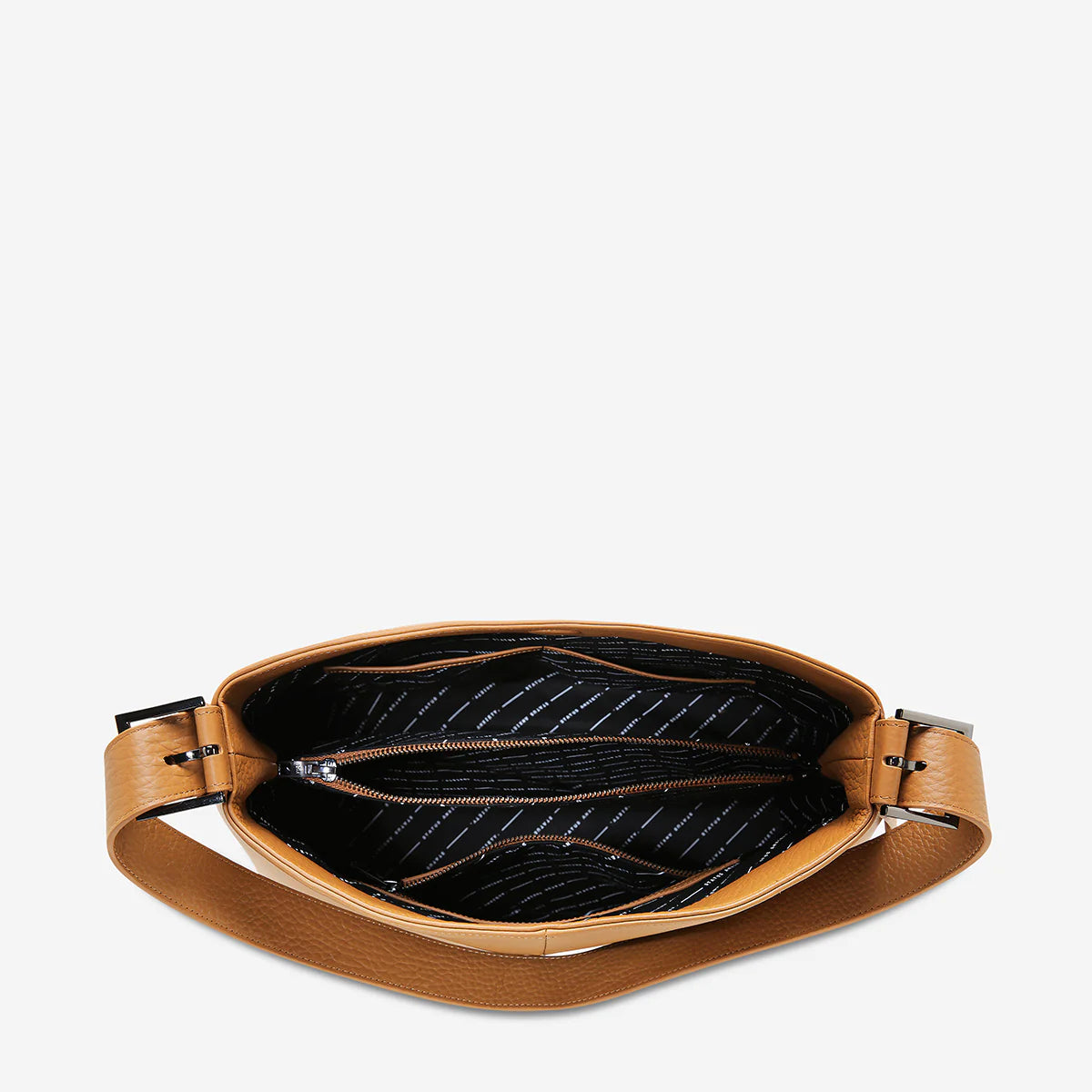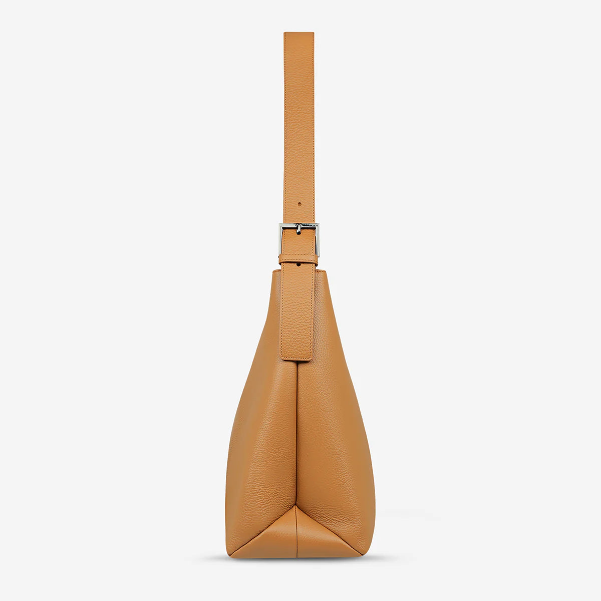 Built to handle almost any size impulse purchase, the 'Forget About It' bag has a magnet close top, an edgy angular silhouette, and branded strap buckles.
