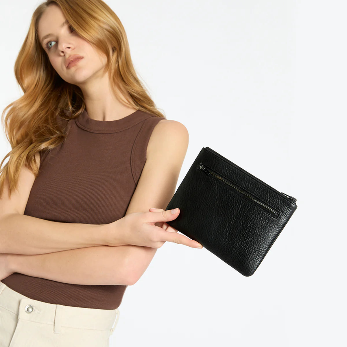 Perfectly sized to carry a few folded banknotes, coins, lip gloss and a stack of cards.
