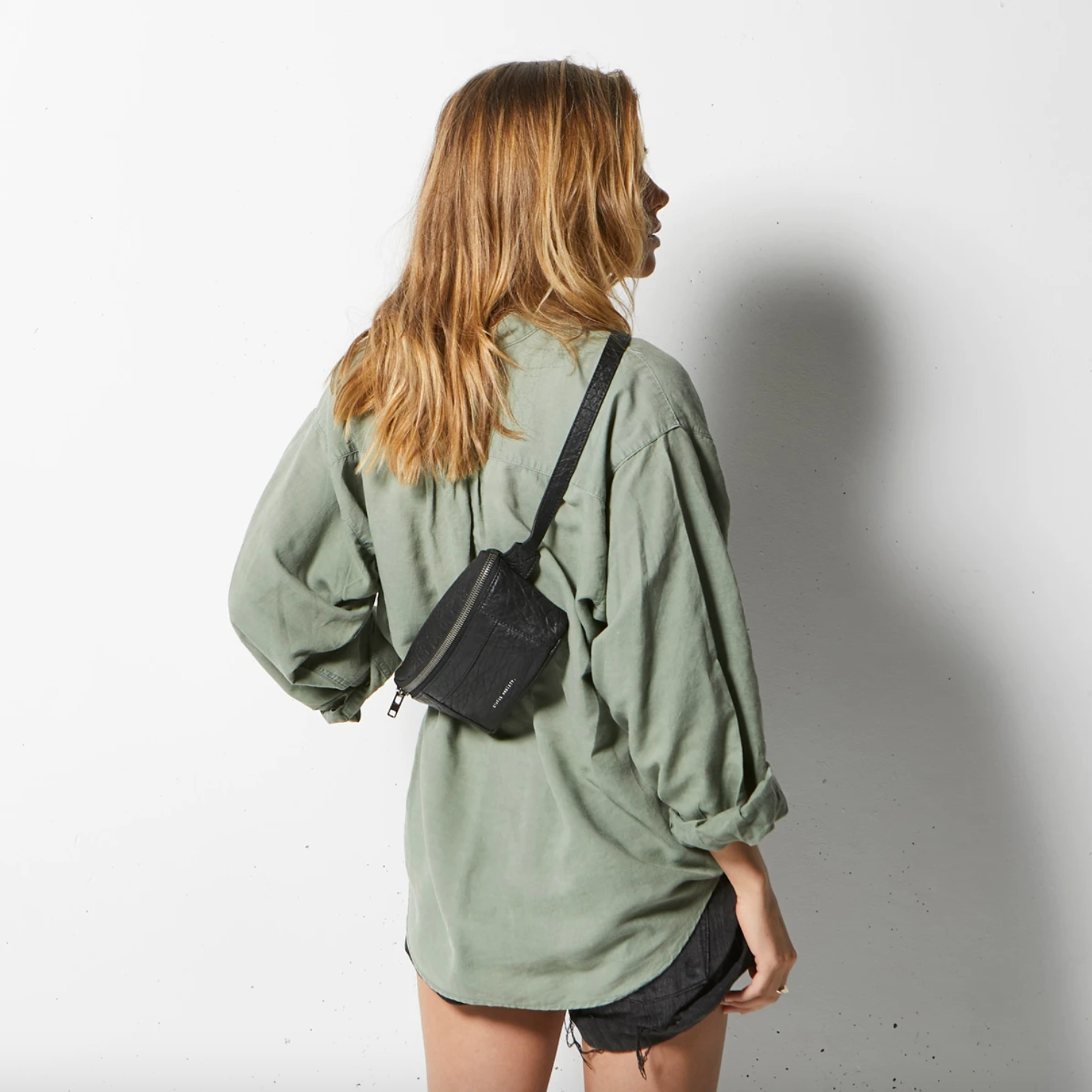 There's no denying the humble bum bag has a shady past...but times are a-changing. Featuring a wide opening main zip compartment, gunmetal hardware and secret stash back zip pocket.