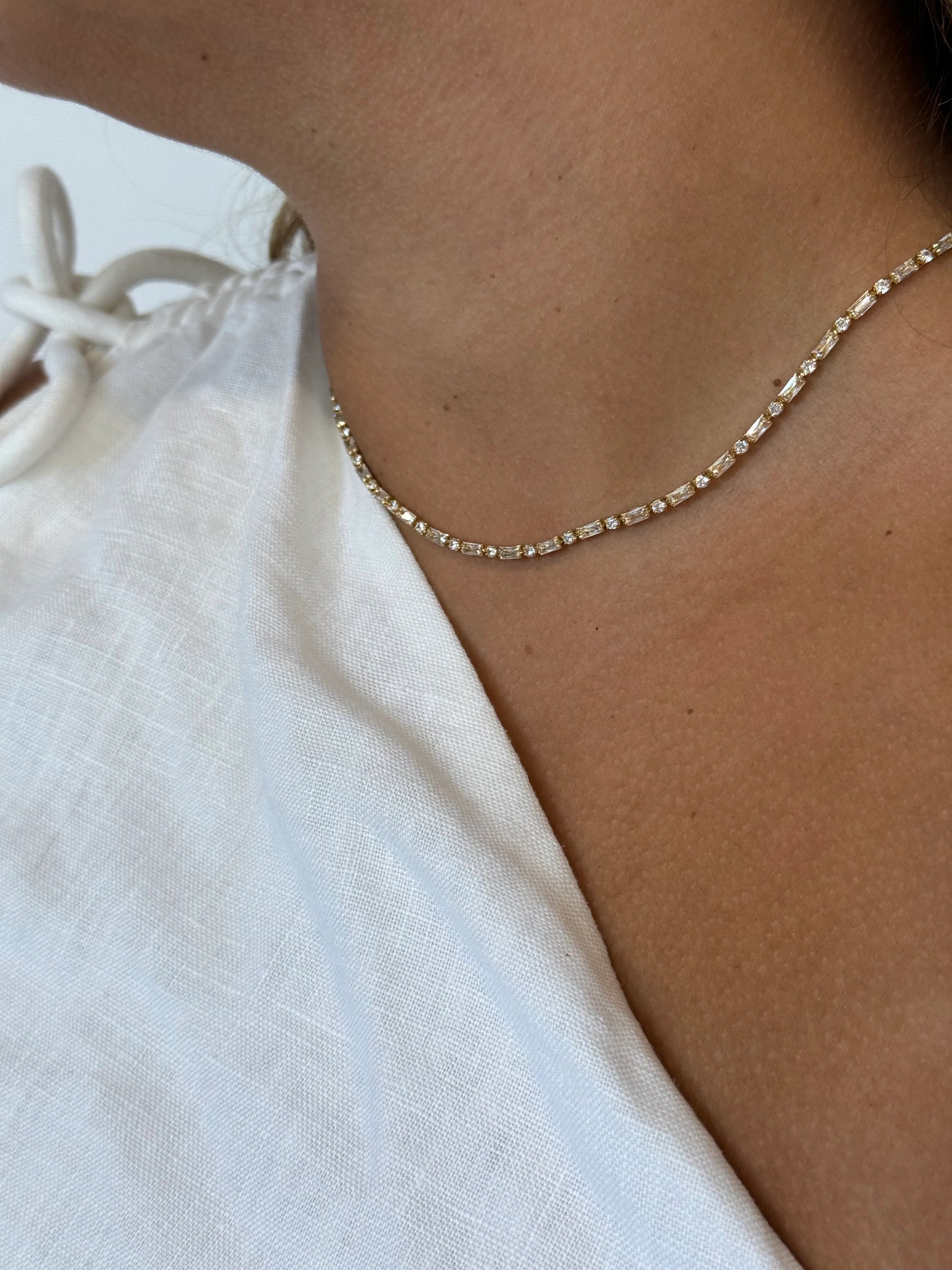 Introducing the Candice Necklace, a timeless blend of elegance and sophistication. Available in stunning gold or radiant silver, this exquisite piece is adorned with delicate crystal detailing, adding a touch of sparkle to any ensemble.