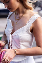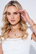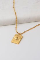 Introducing the Layla Necklace, a dainty and enchanting piece that adds a touch of celestial beauty to your jewellery collection. This necklace features a delicate chain that elegantly drapes around your neck, creating a subtle and feminine look. The highlight of the Layla Necklace is its square pendant, carefully engraved with a mesmerising star design. The intricate detailing of the stars brings a sense of magic and wonder to the necklace, making it a captivating accessory that captures attention. Crafted with precision and attention to detail, the pendant is made to shine and shimmer in the light, adding a subtle sparkle to your ensemble. The Layla Necklace is versatile and can be worn for both casual and formal occasions, effortlessly elevating your style. With its high-quality materials and meticulous craftsmanship, this necklace is built to last and withstand the test of time. Embrace the celestial allure of the Layla Necklace and let its elegant design and celestial charm inspire your inner radiance.