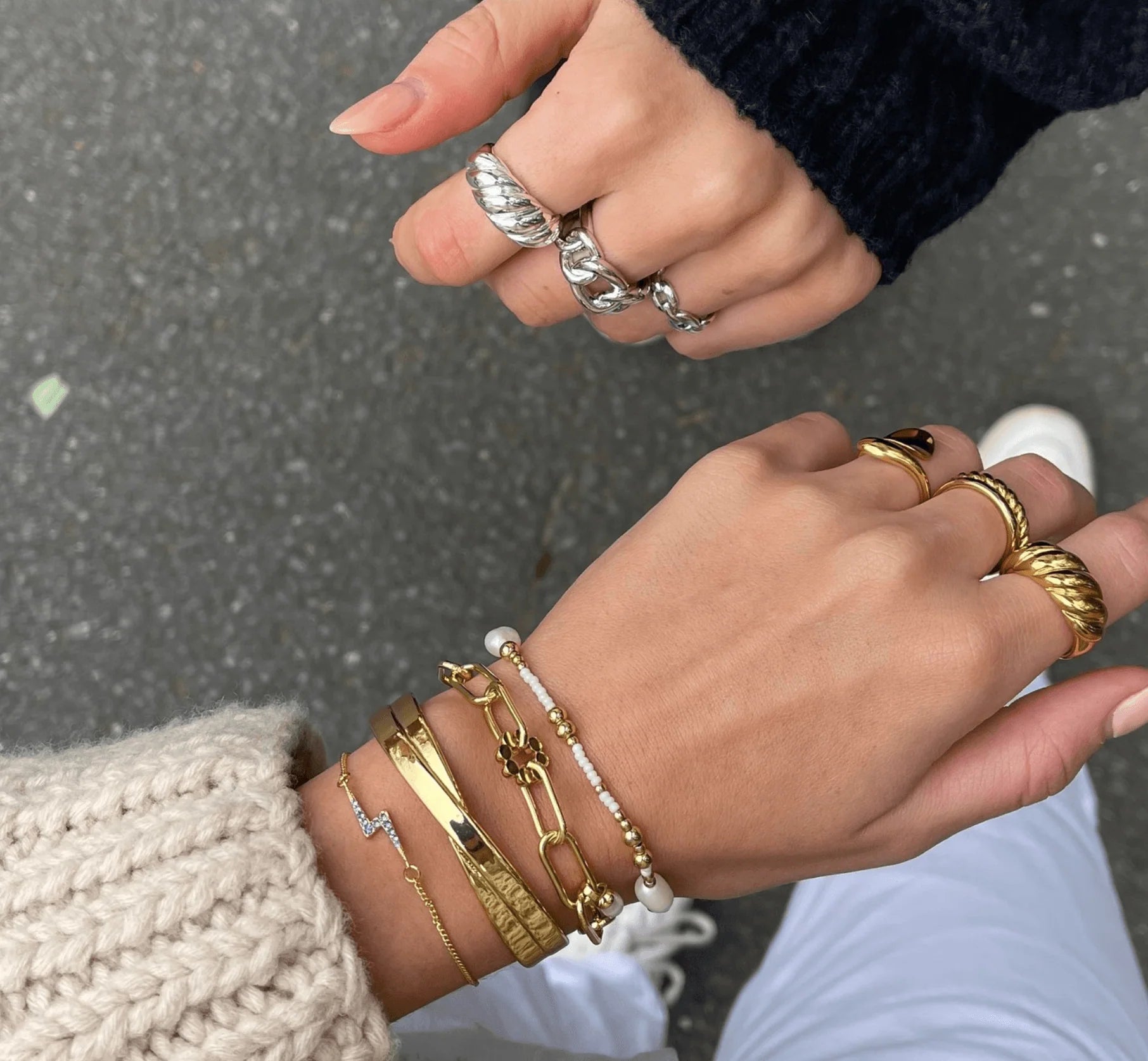 A cuff bracelet that embodies on-trend style and confident fashion-forwardness. This statement piece features a unique shape, exuding a bold and captivating presence on your wrist. Its design embraces the current fashion trends, making it a must-have accessory for those seeking to elevate their style..