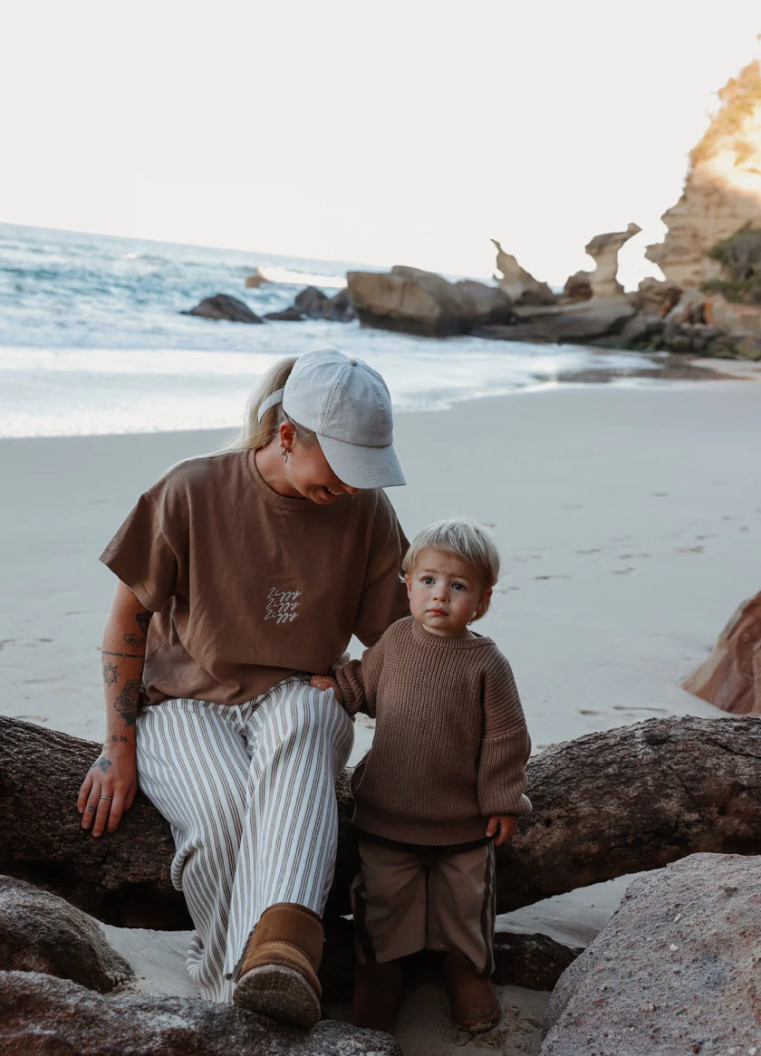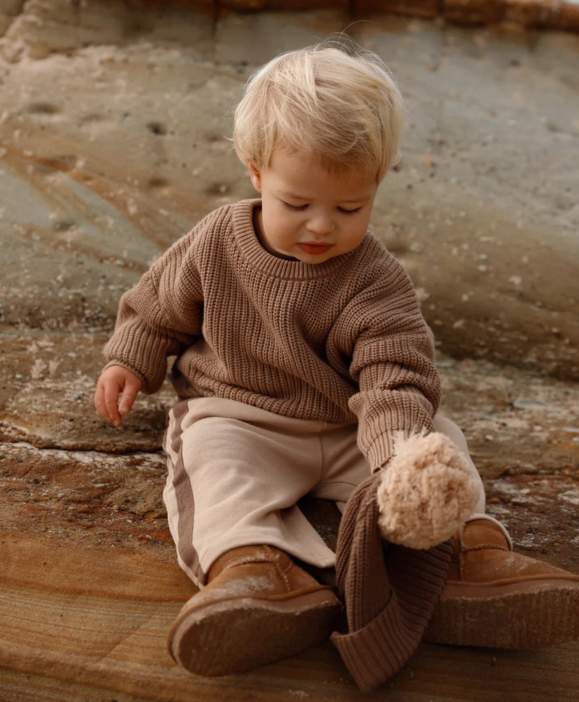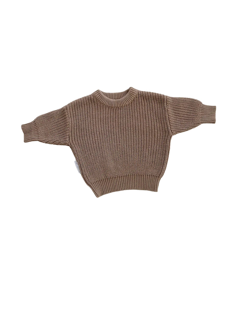 Our chunky knit jumper in our Mocha colour. The perfect jumper for year-round wear. Mix and match with our Wafer Collection.