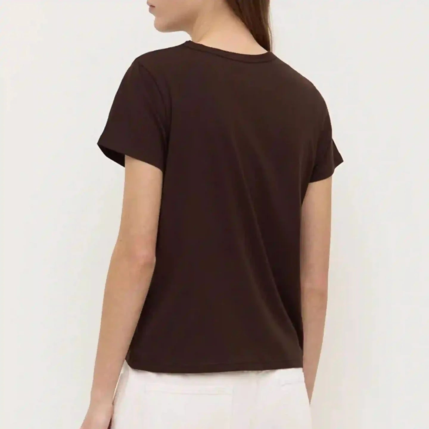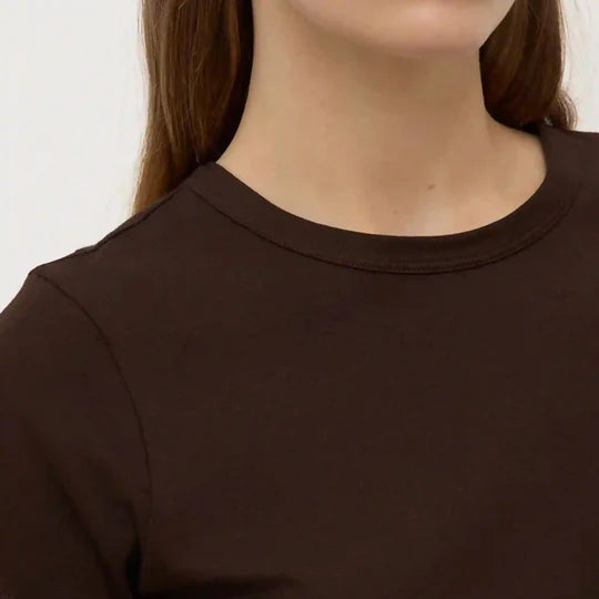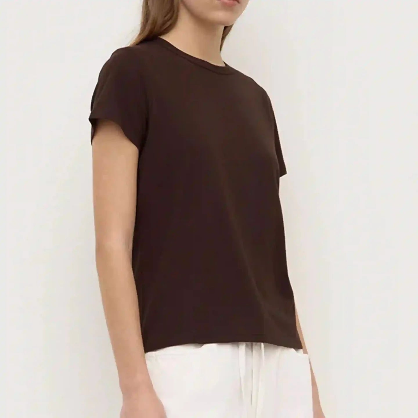 Offering a slightly cropped fit, this tee has a lightweight feel and features self fabric bound neckline, sleeves and hem for a refined look.