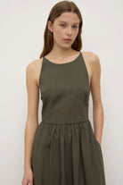 Crafted from our signature cotton poplin, this sleeveless midi dress is designed for day-to-night wear, featuring a fitted bodice and ankle-length skirt with side pockets for added utility.
