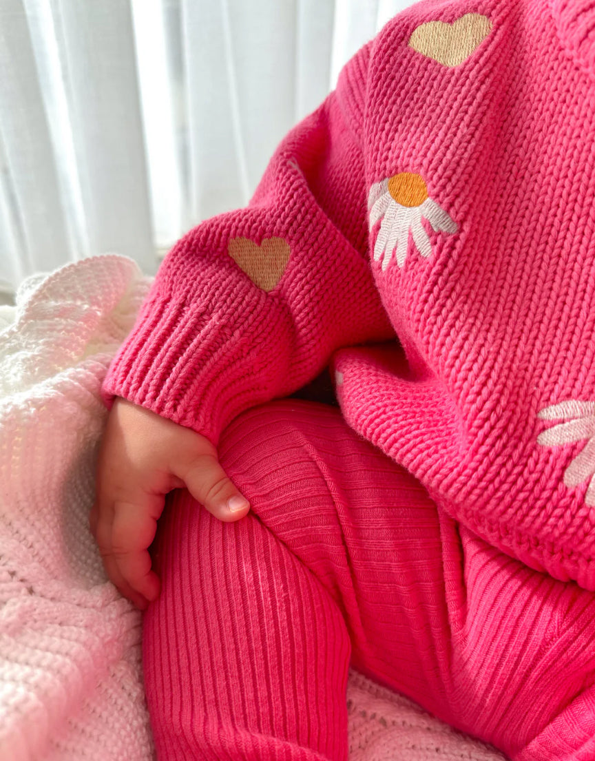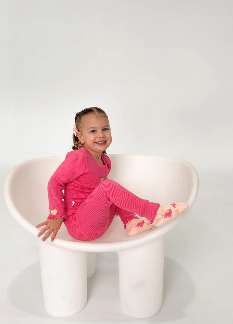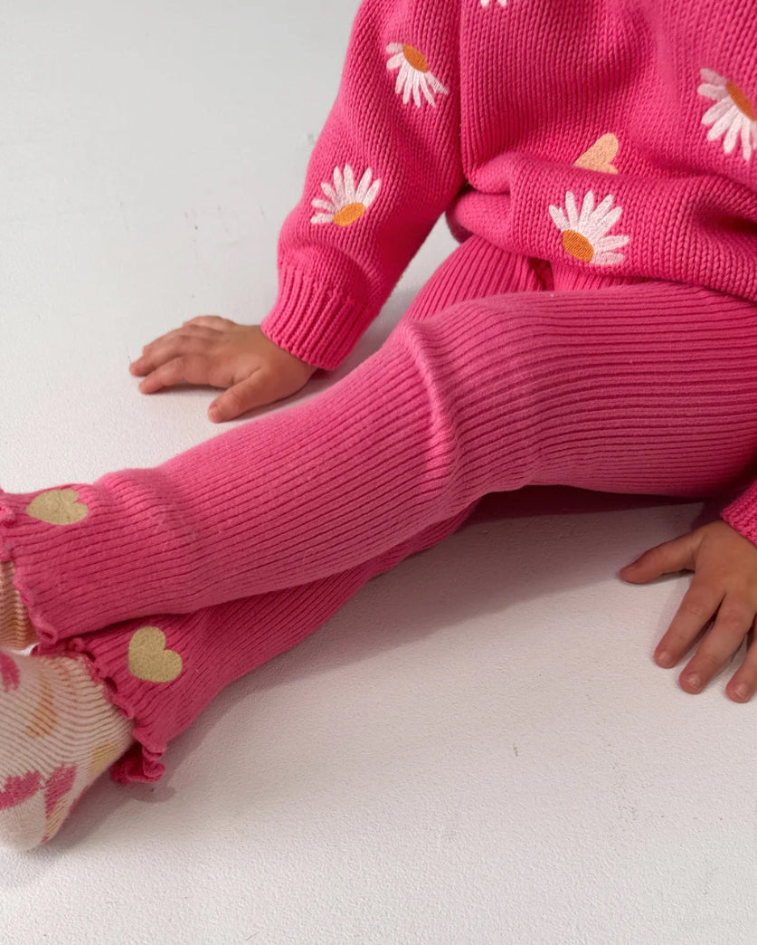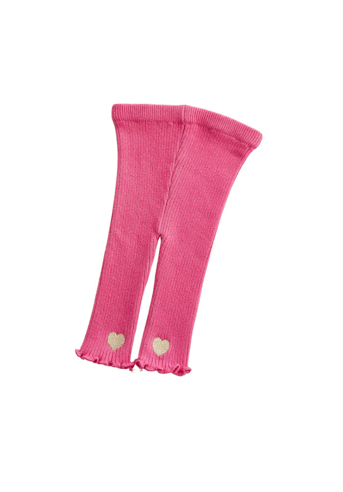 Knitted ribbed leggings in our Raspberry colour, featuring an embroidered Heart on each ankle. Mix and match with our Raspberry + Marlow Collections.