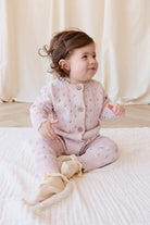 The Emily Onepiece in Dusty Violet Marle is a beautifully knitted essential for your baby’s wardrobe. Featuring a soft textured pattern and buttons down the front, this long-sleeved, full-length onepiece is designed to keep your little one warm and comfortable. Ribbed cuffs at the wrists, ankles, and neckline ensure a snug fit without restricting movement.