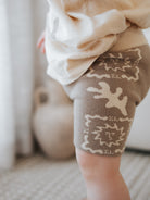 Jacquard knit bike shorts in our Milo colour featuring our Sorrento design in Latte. A comfortable, stretchy fit with an elastic waist. Mix and match with our Sorrento, Milo + Cappuccino Summer Collections.