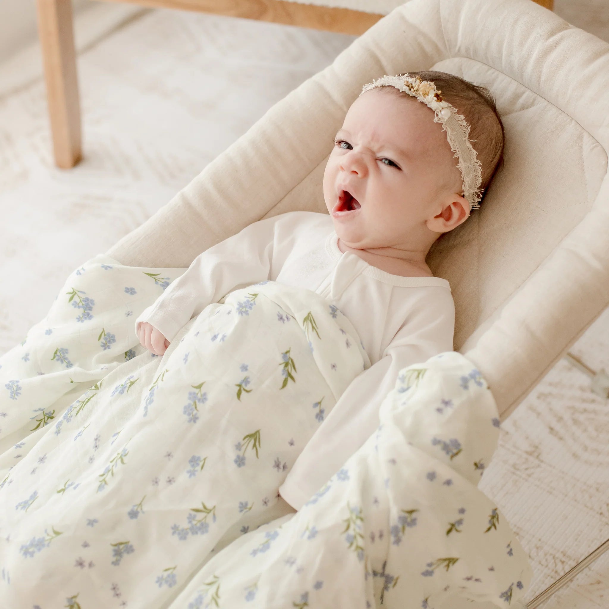 Imagery shown is for photography purposes only. Please observe safe sleeping guidelines and ensure you do not cover your baby's head while sleeping and that blankets are tucked in securely at the ends and edges of cots and bassinets to ensure they do not cover your baby's face. Please also ensure no toys, pillows or cot bumpers are left in your baby's cot while sleeping.