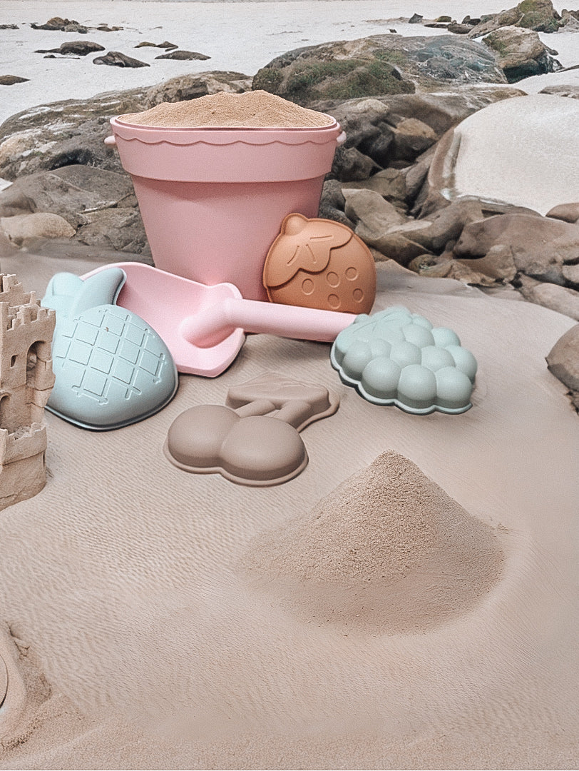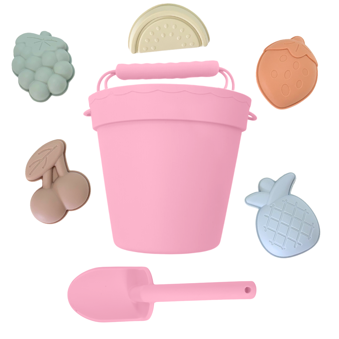 Our Tutti Frutti set is full of fruit-filled fun for those sweet beach vibes. Featuring Sage Grape, Peachy Strawberry, Blush Cherry, Blue Pineapple and Vanilla Watermelon moulds, all bundled together with a spade in a Fairy Floss pink bucket.