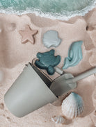 Our Under the Sea set brings ocean inspired shapes, perfect for any mini marine biologist! Featuring Grey Shell, Blush Starfish, Ocean Blue Dolphin and Deep Blue Turtle moulds, all bundled together with a spade in a sage green bucket.