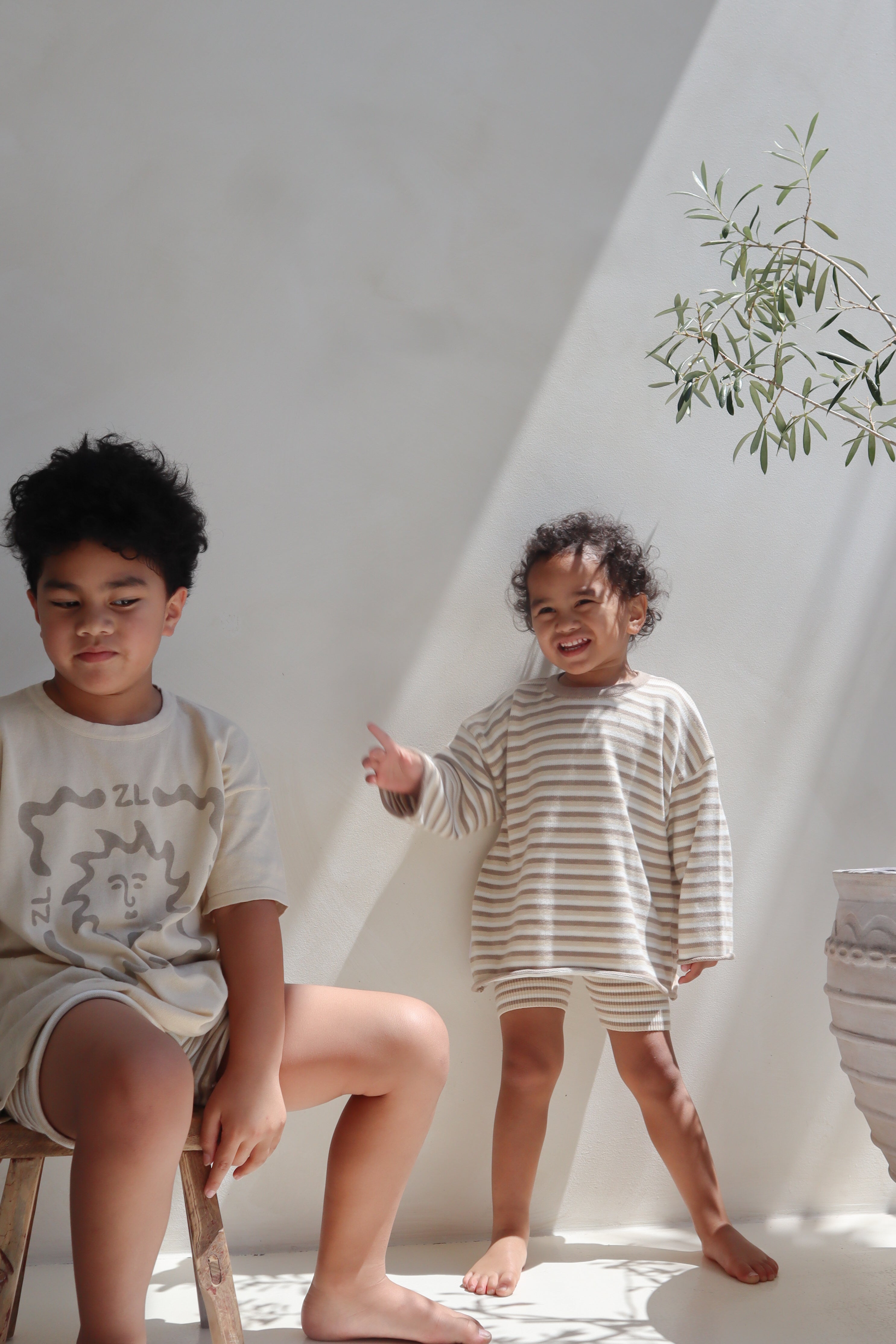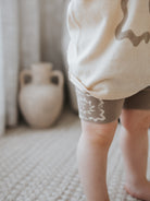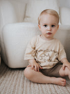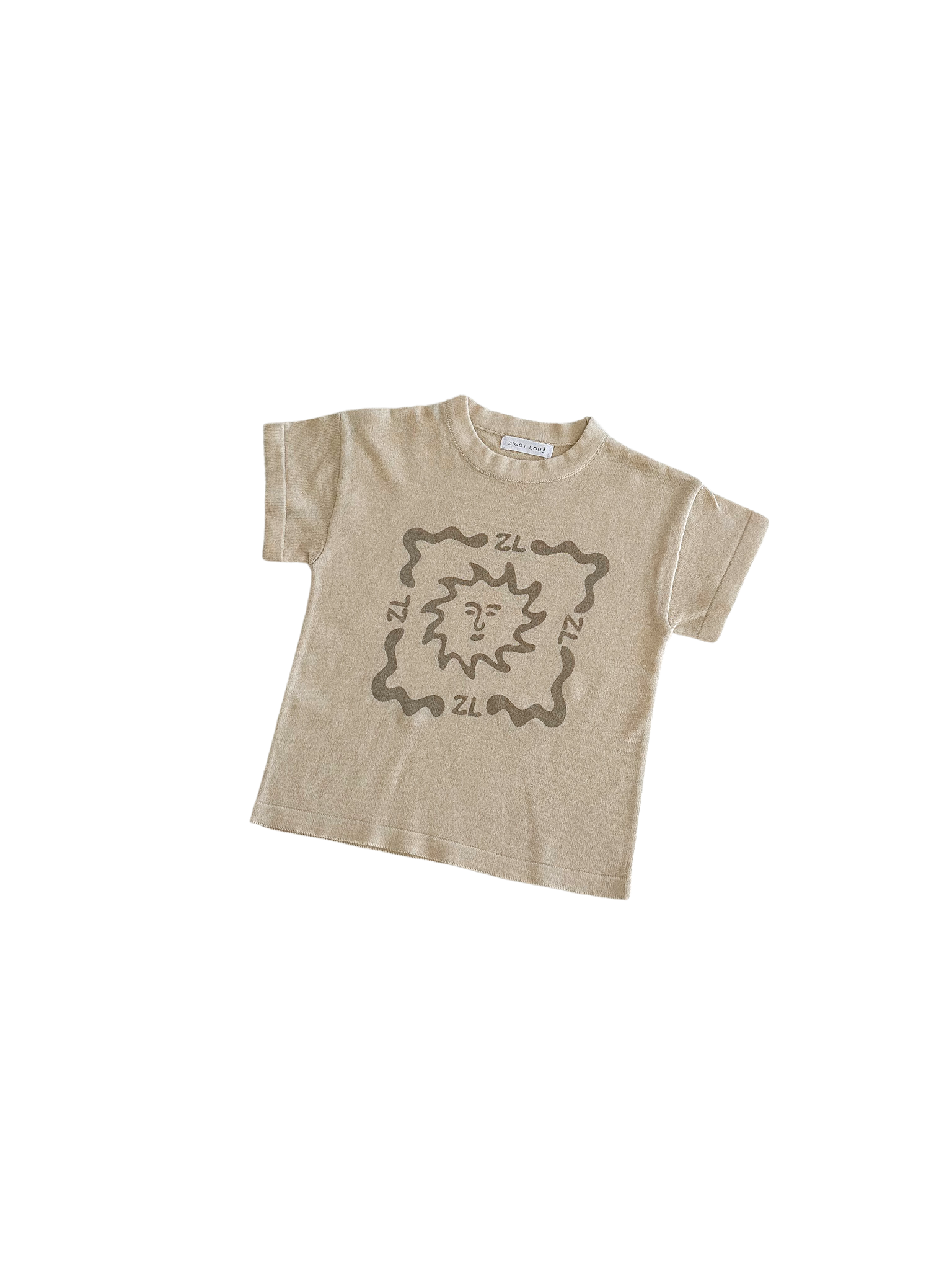 Knitted tee in our Latte colour featuring our Sorrento printed design on the front. Mix and match with our Sorrento, Milo + Cappuccino Collections for the perfect outfit.