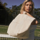 The 'Knees Deep' oversized tote wants to be exclusive with you. That's right, no other canvas carry all totes in your life, her intentions are clear. Shouldn't be too hard a decision really...