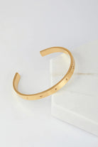 A captivating cuff bracelet that exudes celestial charm. This stunning piece features a sleek and stylish cuff design adorned with star-shaped engravings along the outside. The Layla Bracelet effortlessly combines elegance and mystique, making it a versatile accessory for any occasion. Adorn your wrist with this enchanting bracelet and let its celestial beauty shine through.