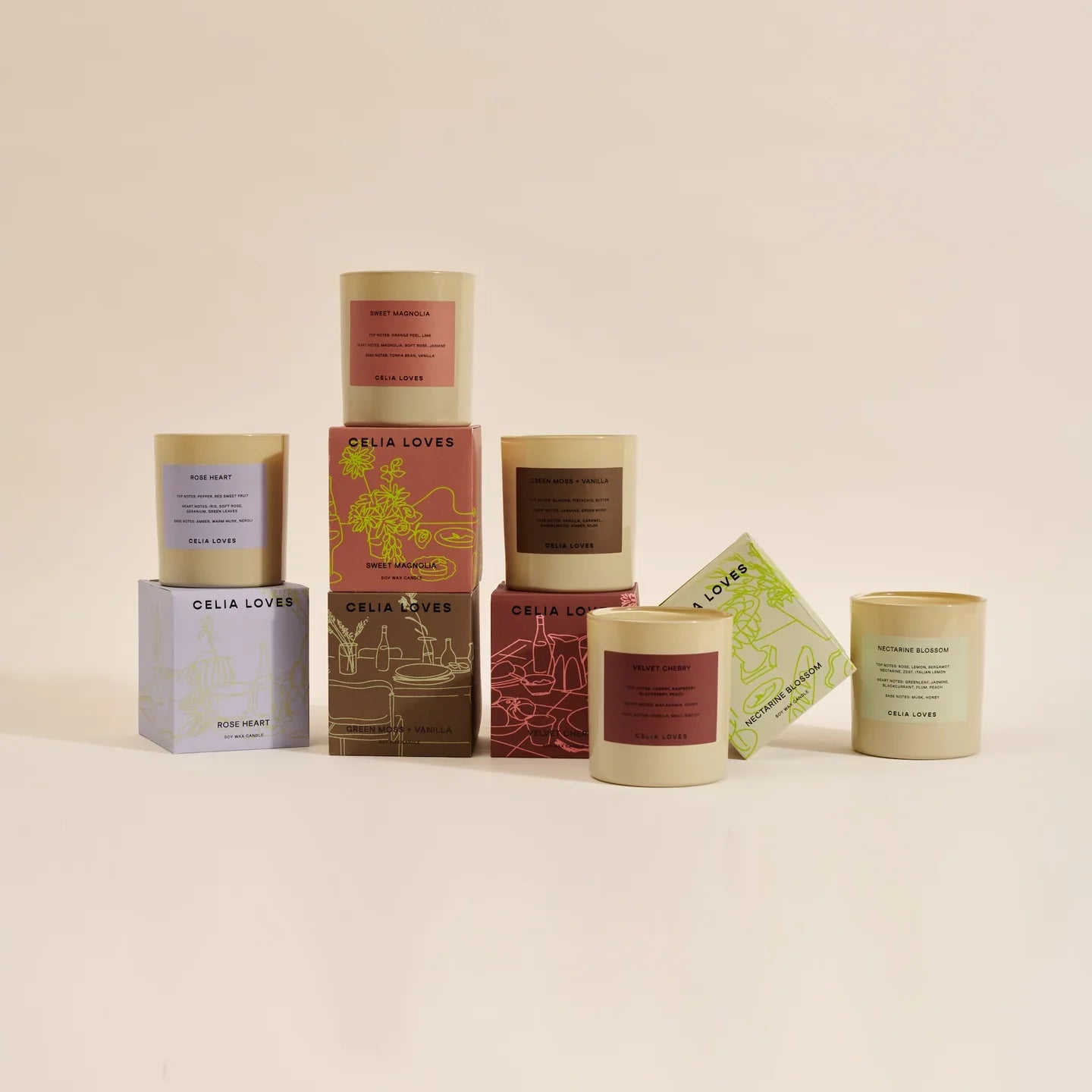 Handcrafted on the Surf Coast of Victoria using soy wax, the Celia Loves Soirée Collection is an artful nod to sensory memories around food, chaos, clamour, love and laughter. Featuring original tablescape illustrations, this collection was carefully curated to feel luxurious and indulgent to elevate your iconic Soirée stories.