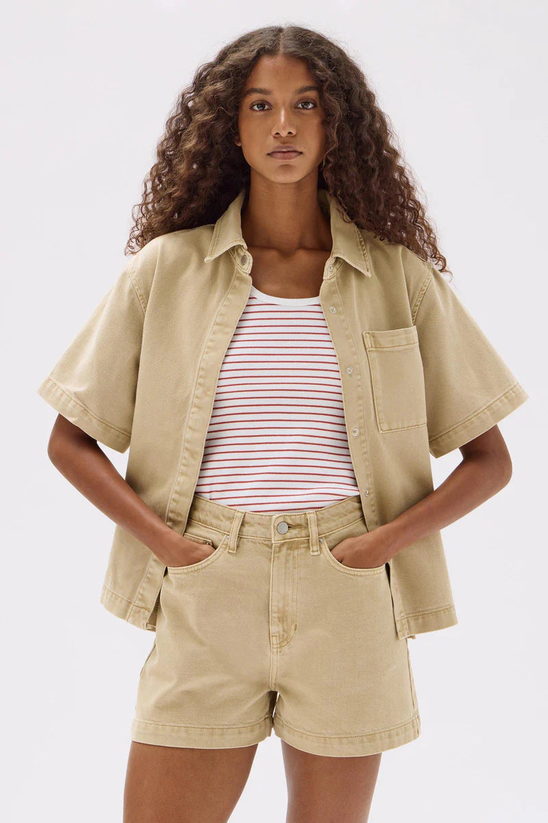 The Boxy Denim Short is designed for classic everyday wear. A high-rise denim short that tapers at the waist and have a wider, boxy fit through the leg.