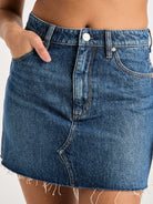 Our Repair Mini Skirt is the classic denim mini skirt. Designed to sit snug on the hips, with an A-line hem that finishes at upper thigh length. Made in a soft non-stretch denim, in a mid blue wash.