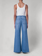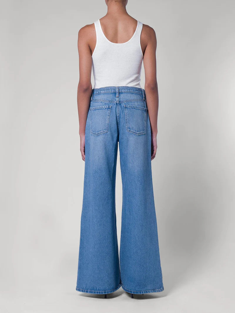 Our ultimate wide leg jean. The Carly Jean sits just below the true waist, is fitted through the hip and then falls wide from the thigh to the floor, designed to sit over your shoe. Crafted in premium rigid denim.
