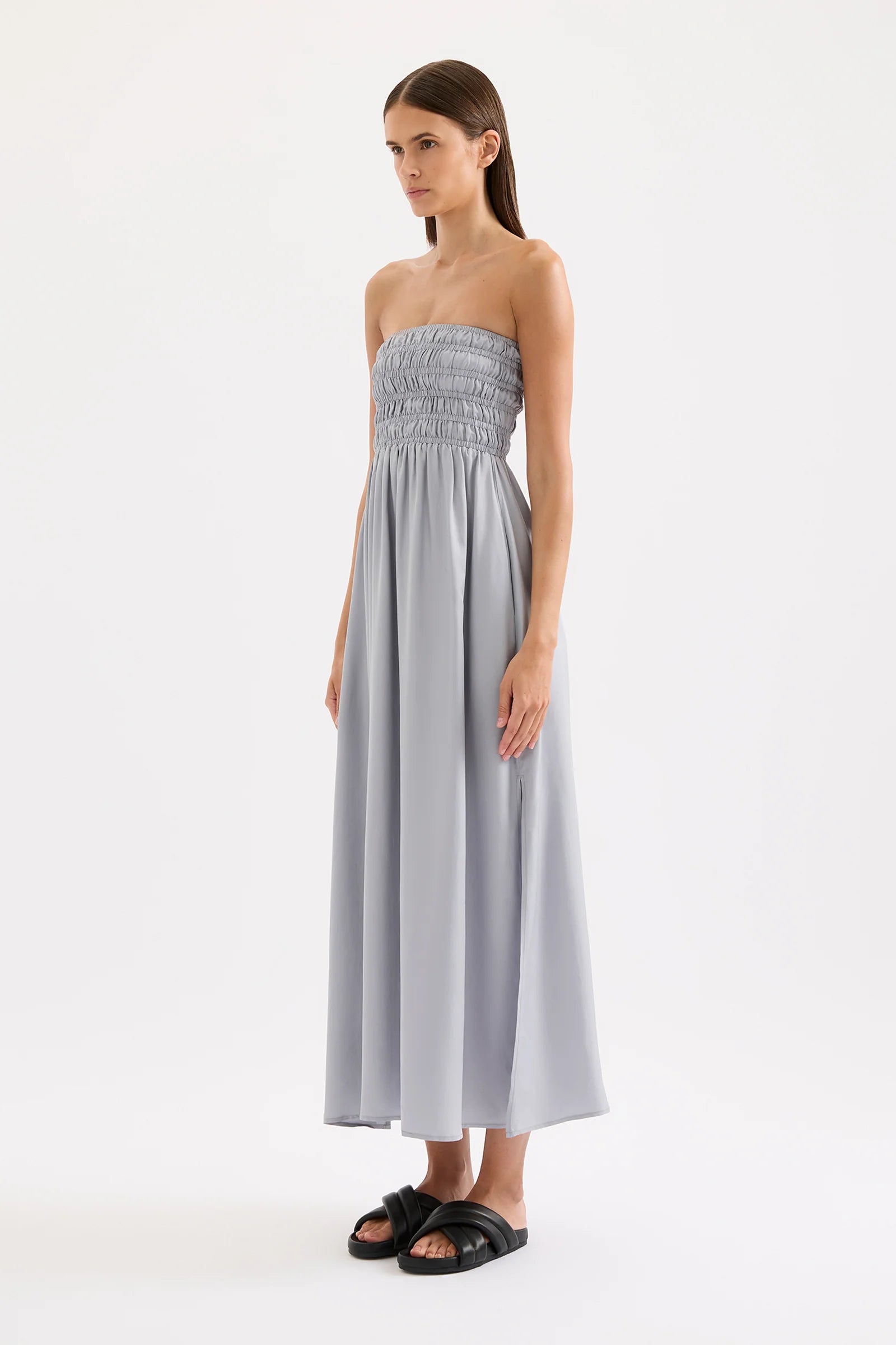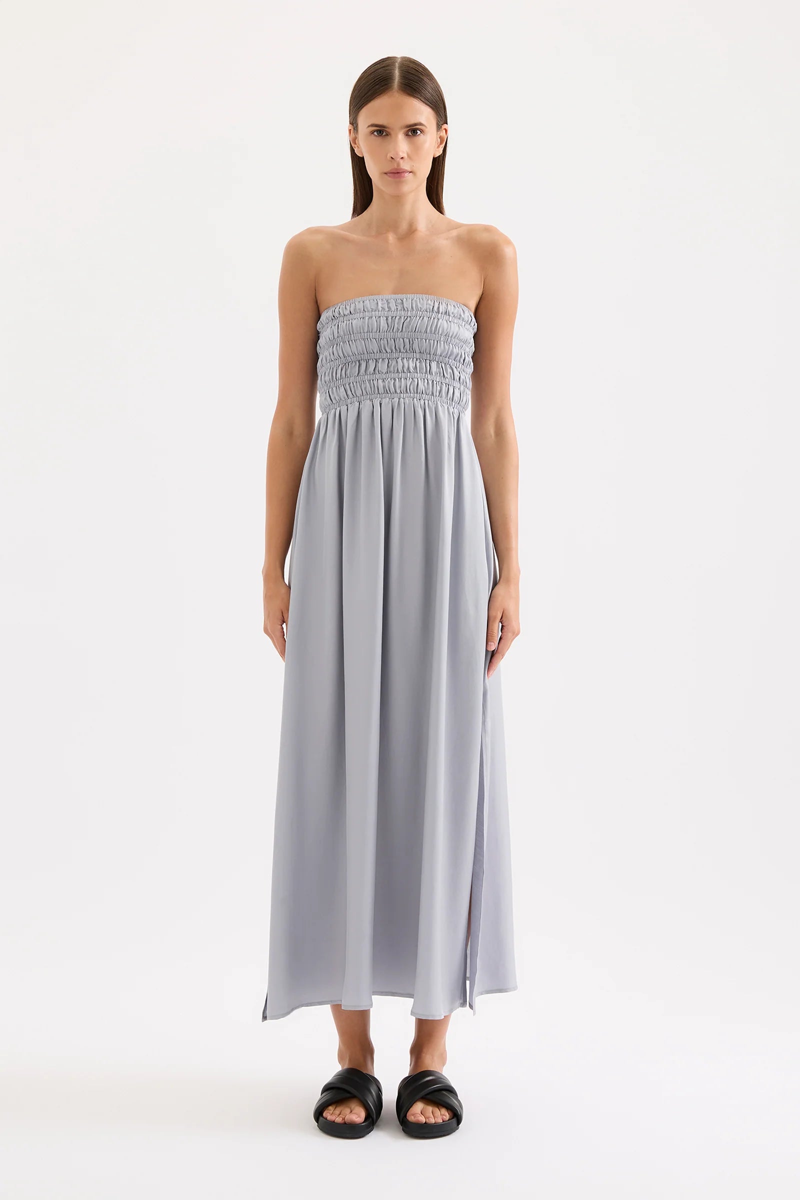 The Zuri Tencel Maxi Dress is made from a Tencel blend fabrication which is lightweight and has a smooth, drapey hand feel. The shape is in our best selling silhouette which is feminine and relaxed with a strapless, shirred elasticated bodice and soft billowing skirt that finishes above the ankle. Features include side seam pocket and side splits at the hem.