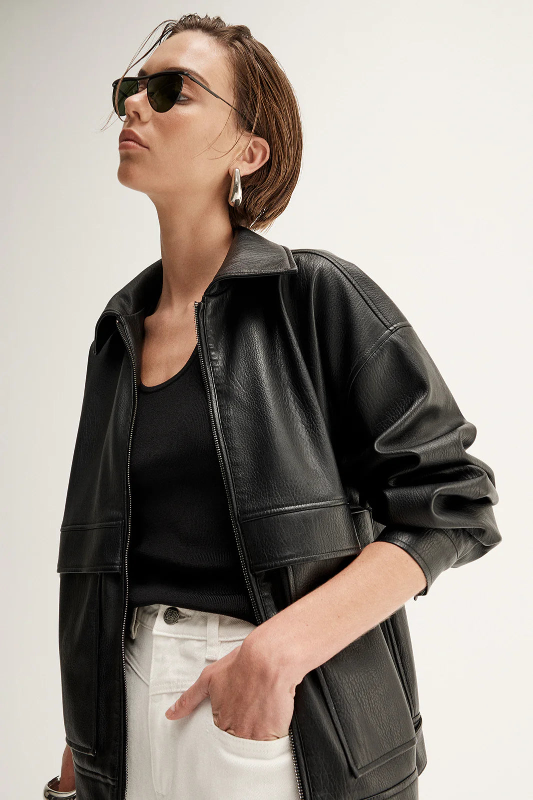 Made of our best-selling vegan leather, the Suki Jacket captures the essence of bold minimalism. With refined detailing and a relaxed fit, this jacket is made to transition seamlessly from day-to-night styling. Achieve a polished look by pairing with your go-to denim jeans.