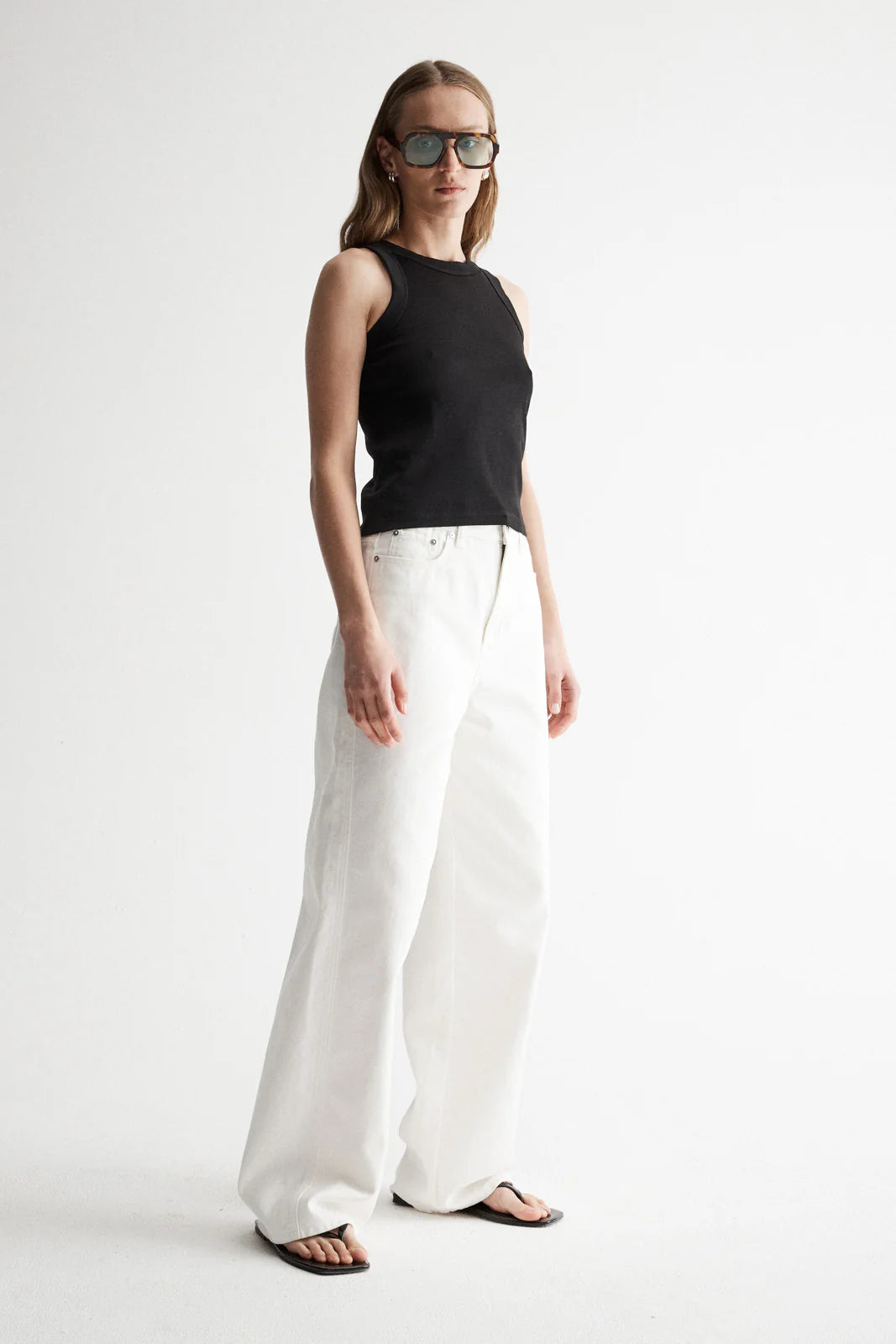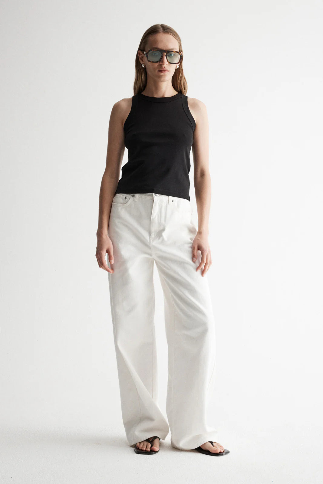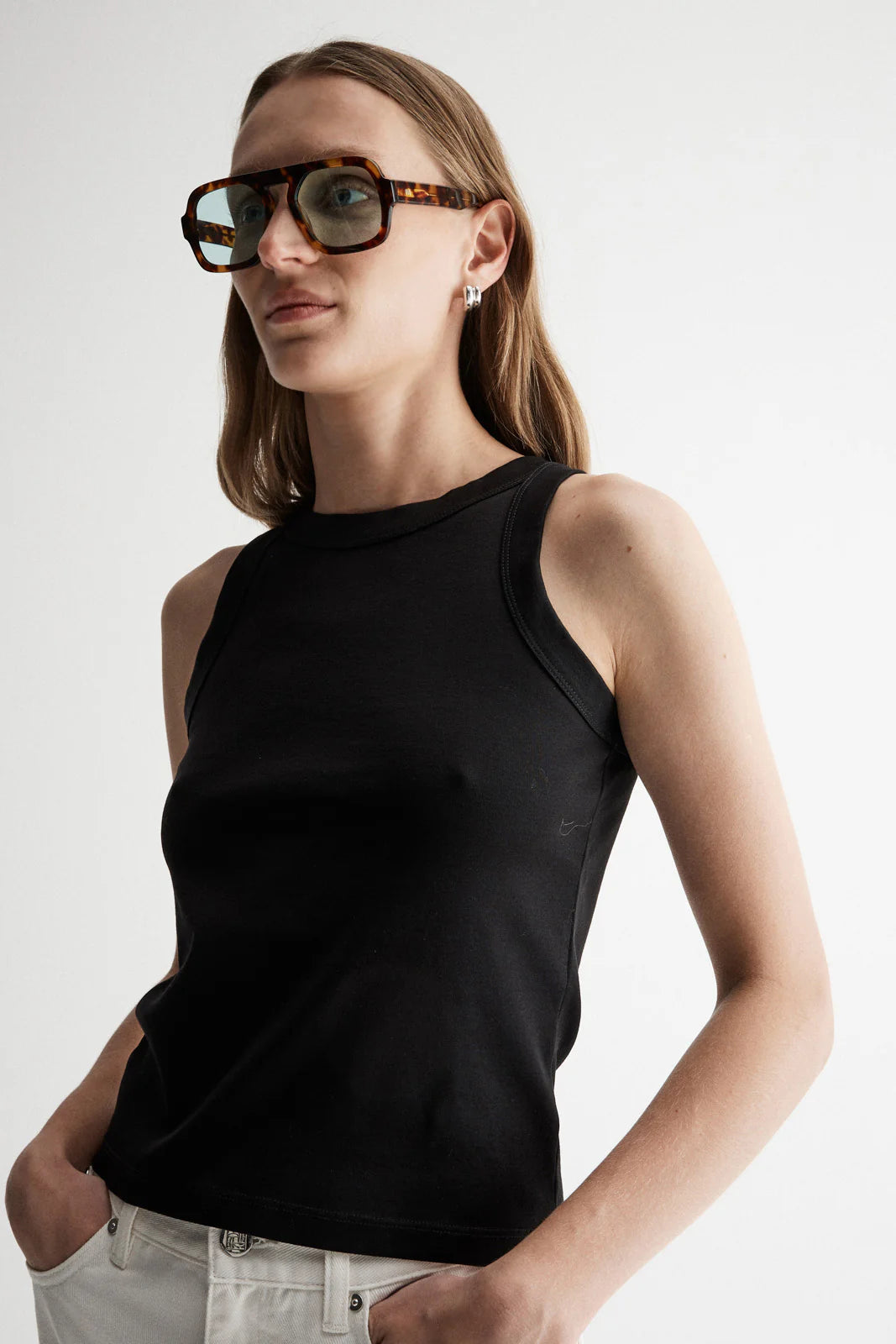 Part of our premium basics range, the Zoe Tank in Black is a true wardrobe staple. With a classic sleeveless design, crew neckline, and regular fit, this tank is sleek and comfortable. The wide self-bind finishing on the neckline and arm holes sets it apart with an elevated look ideal for pairing with jeans and suiting options.