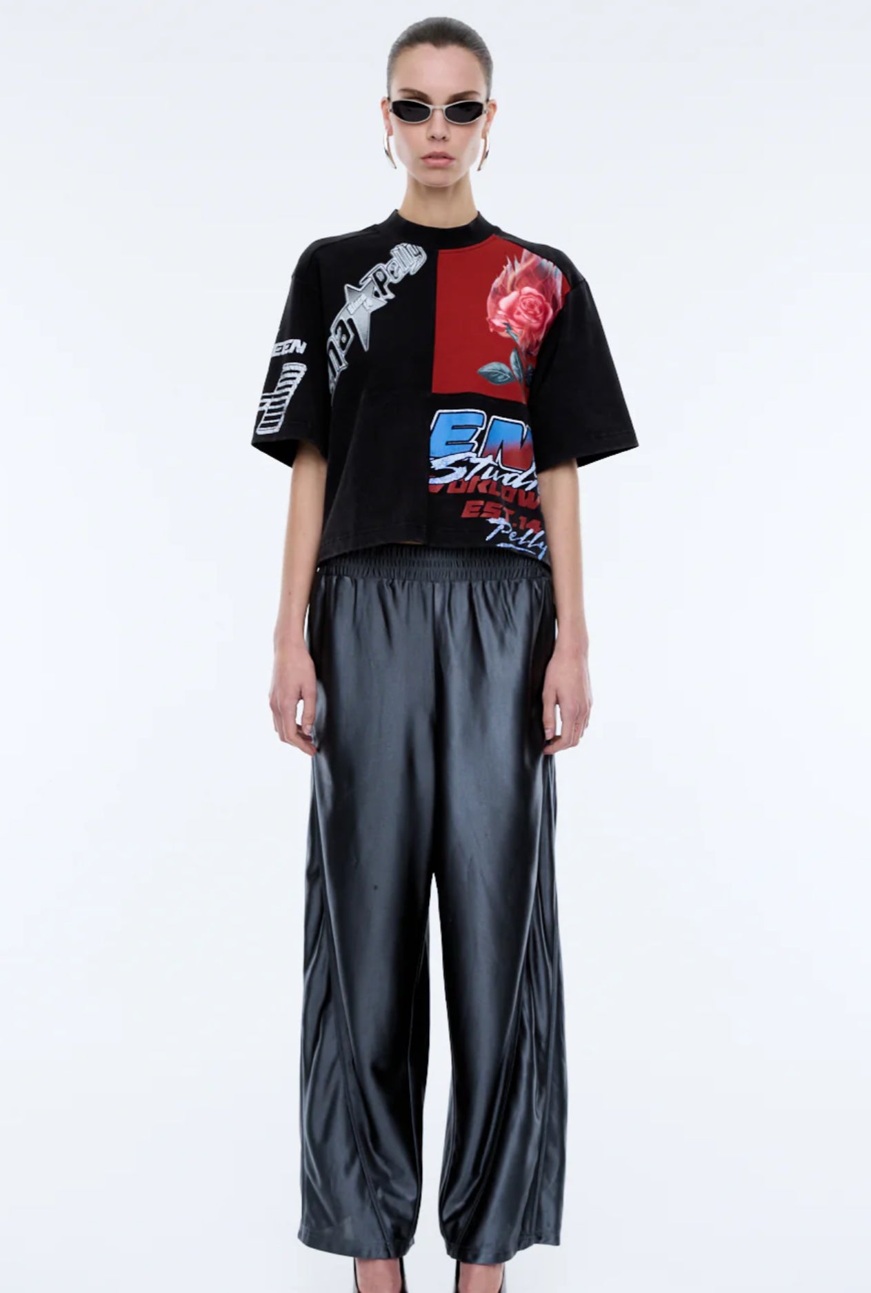 Ena Pelly - Flaming Rose Patchwork Tee (Washed Black)