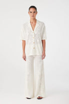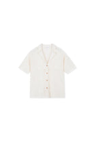 A relaxed short-sleeve shirt in a custom crochet knit, offering breathability and soft structure. Designed for ease through changing seasons and everyday layering.
