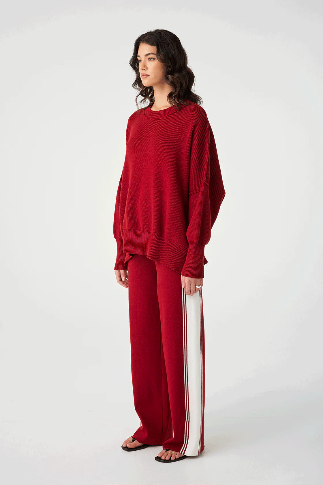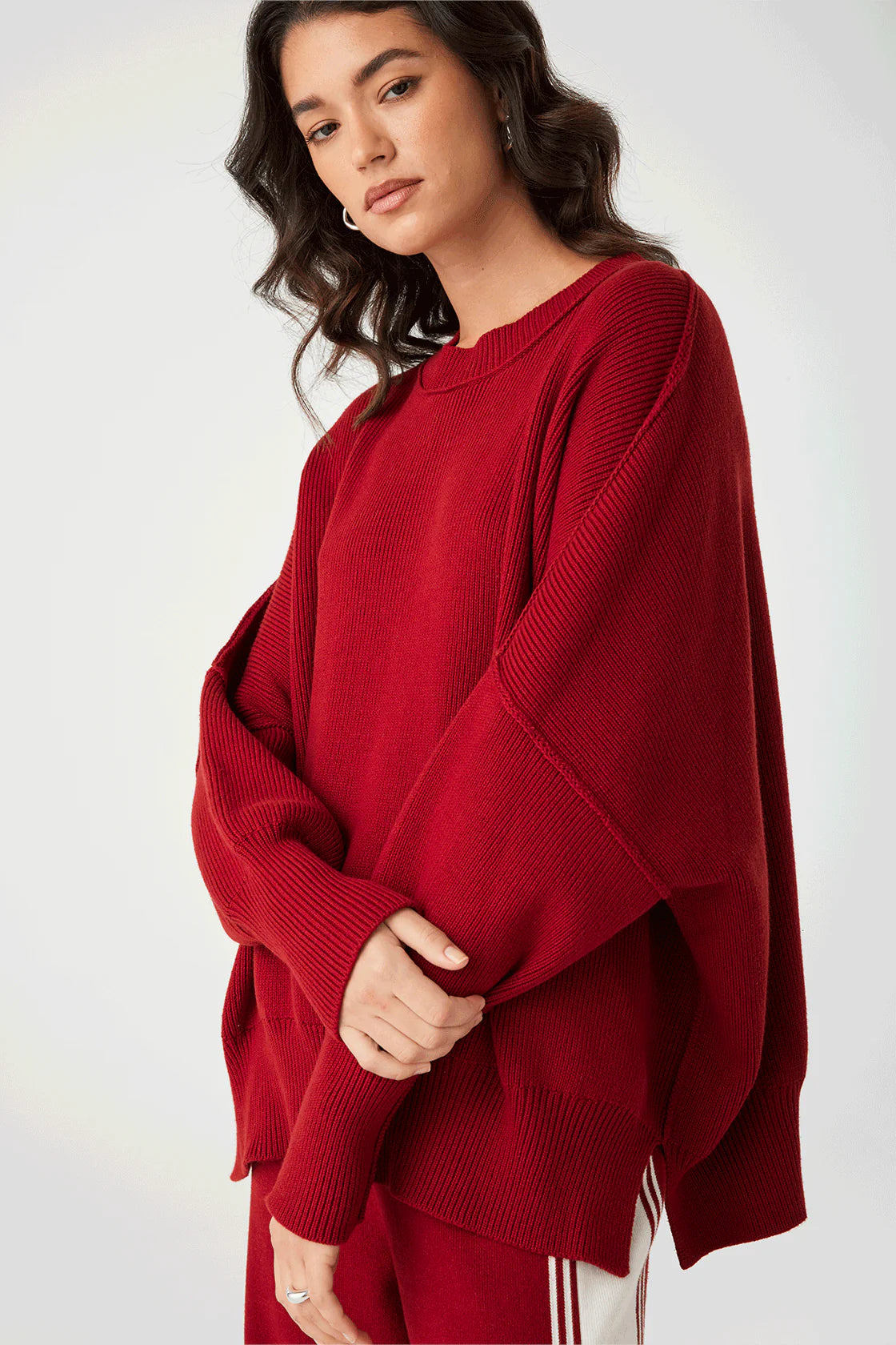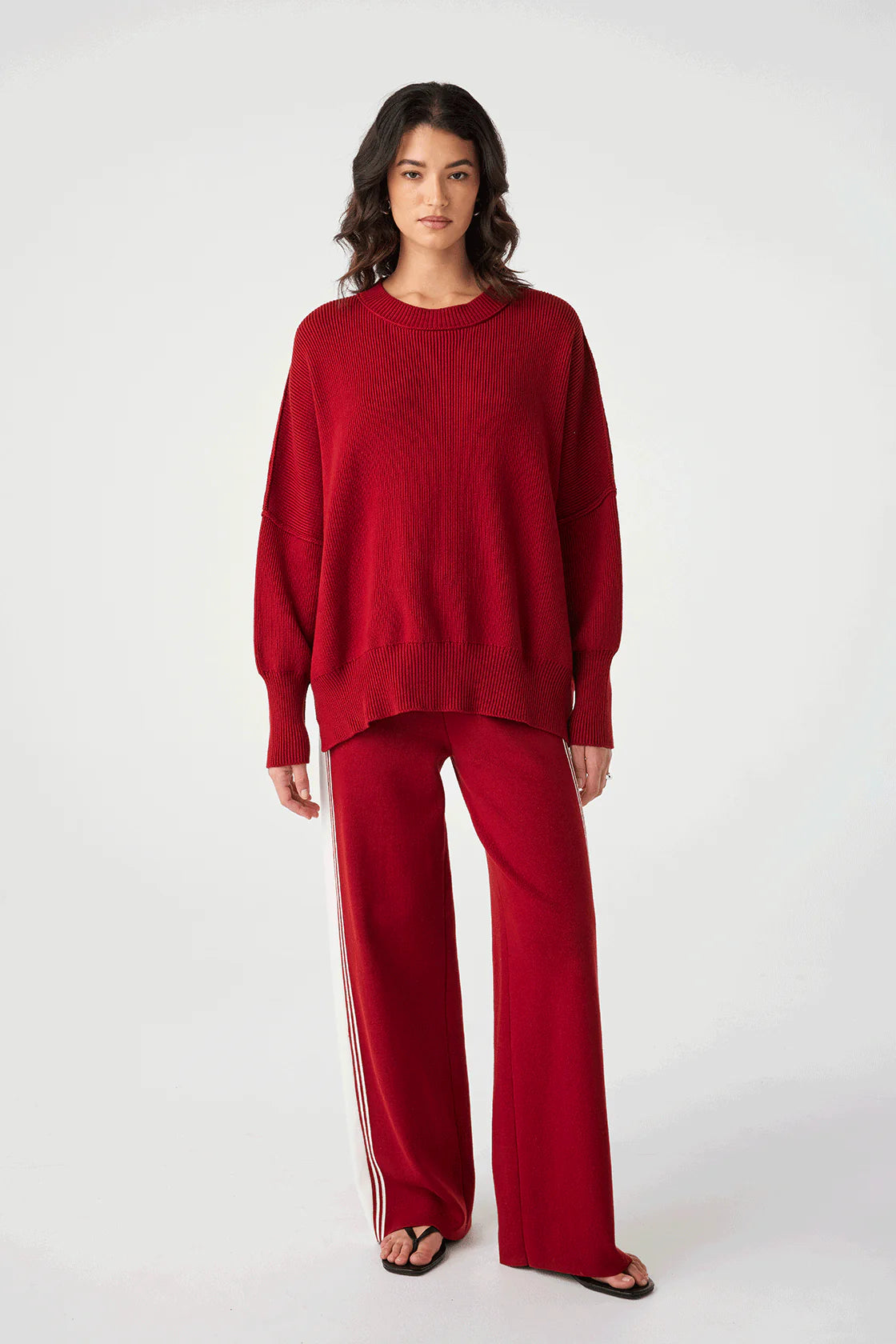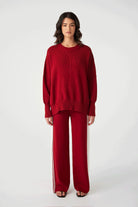 The Harper Knit Sweater in Wine features an oversized, slouchy fit with a wide crew neck for a relaxed yet refined look. Its soft, stretchy knit offers all-day comfort, making it a perfect layering piece for any season.