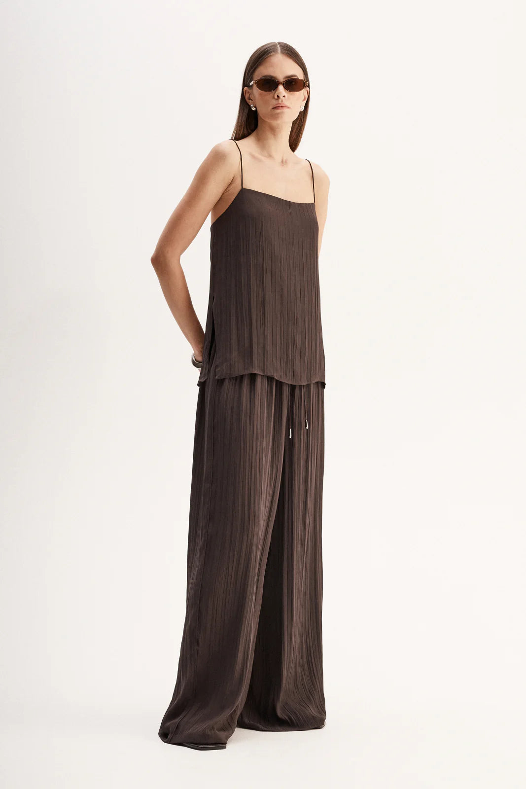 Made of a silky soft plisse fabric, the Beckett Pant is a lightweight, elevated casual piece for trans-seasonal outfitting. With an elastic waist and inseam pockets, these pants can be styled with everyday basics or the matching Beckett Top for a sleek coordinated look