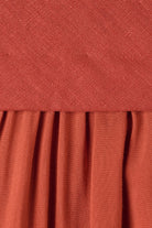 A new yet beloved and best selling silhouette. With a fitted bodice, designed from a signature 100% European Flax® linen in a dusty tomato red, it features gathered detailing across the front for a more flattering fit and a drop waist. From there it falls into a soft skirt with a slight A-line, designed from a responsible rayon fabrication, offering a unique contrast to the linen bodice. Style with a simple sandal for a unique approach to occasionwear.
