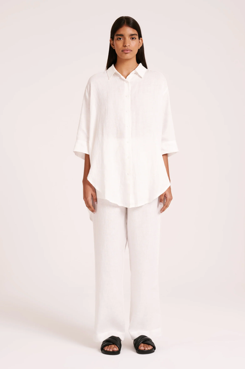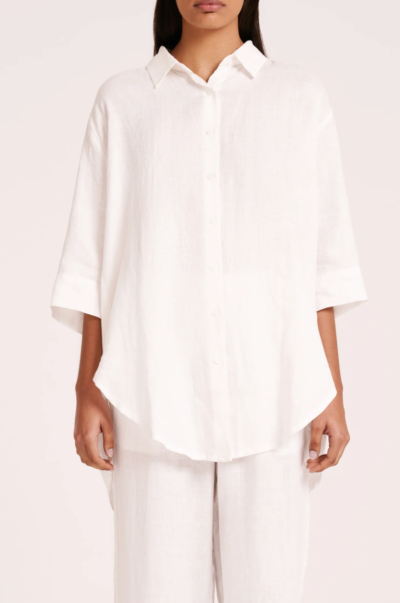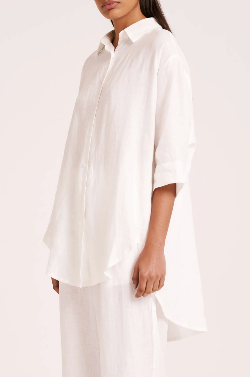 Nude Lucy - Lounge Linen Longline Shirt (White)