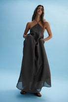 The Margot Maxi Dress is made from a light weight lyocell blend fabric which is slightly sheer and has a smooth hand feel. The silhouette is relaxed with a high triangular halter neckline and full ankle length skirt. Features include a high halter neck and low elasticated back. This dress is fully lined.