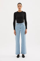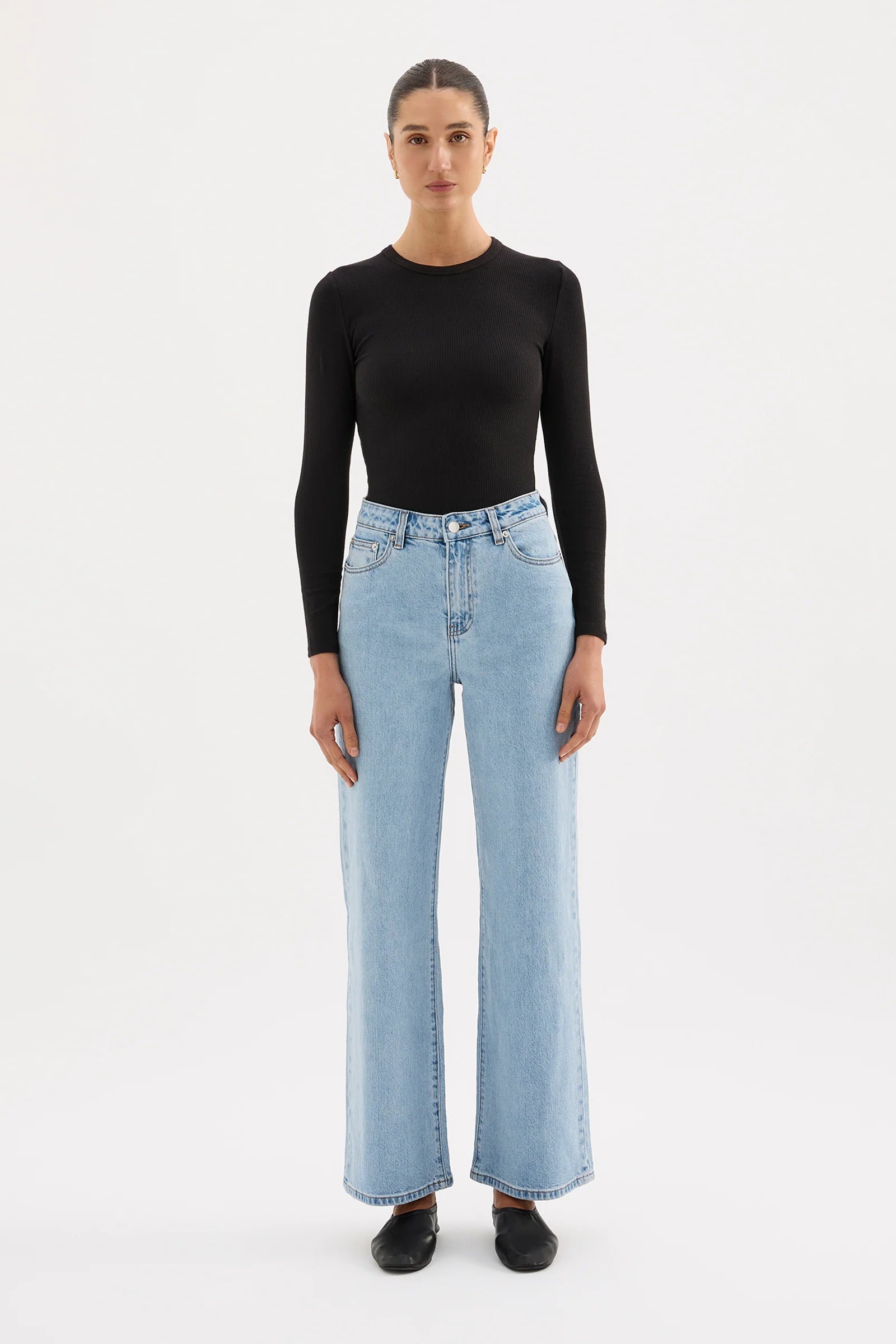 The Organic Rib LS Tee by Nude Lucy is a key piece to add to your basics wardrobe range. Made in organic cotton the silhouette is a flattering close fit. Featured include a crew neck, long fitted sleeves, and length finishing at the hip. This can be tucked in or worn over midrise bottoms.