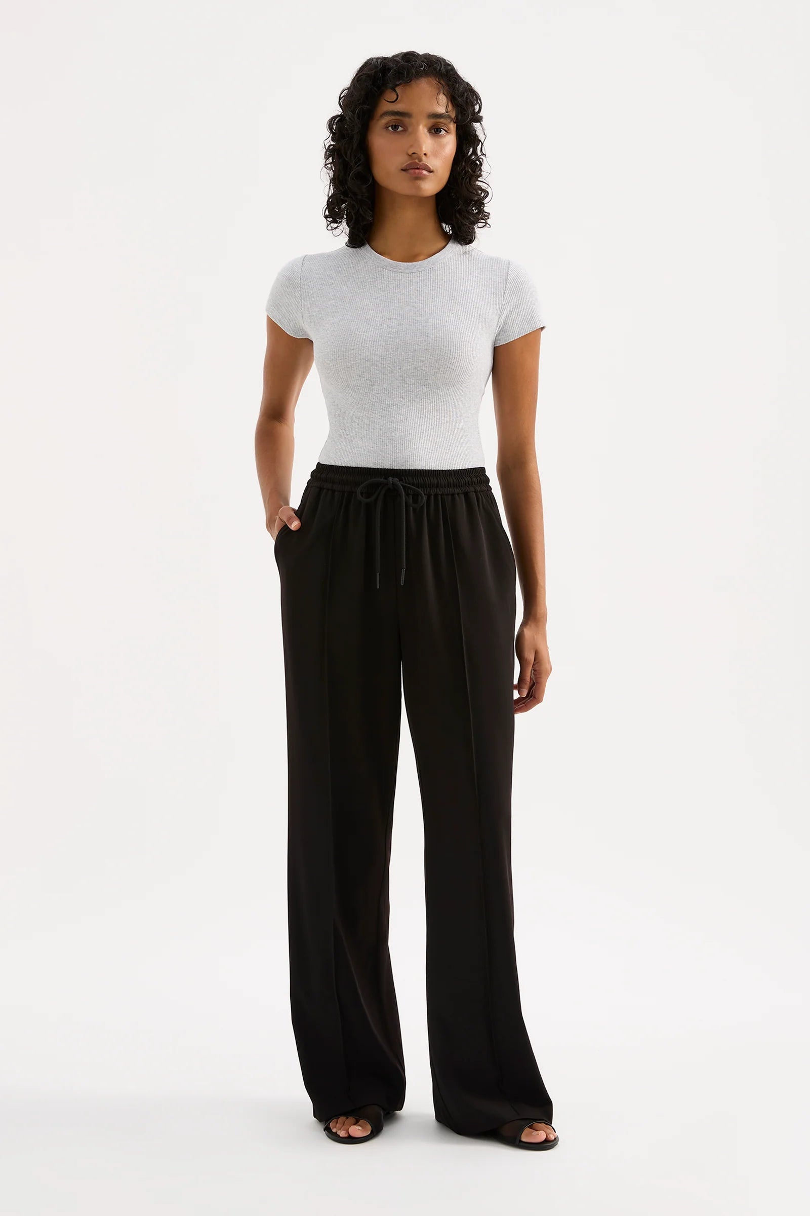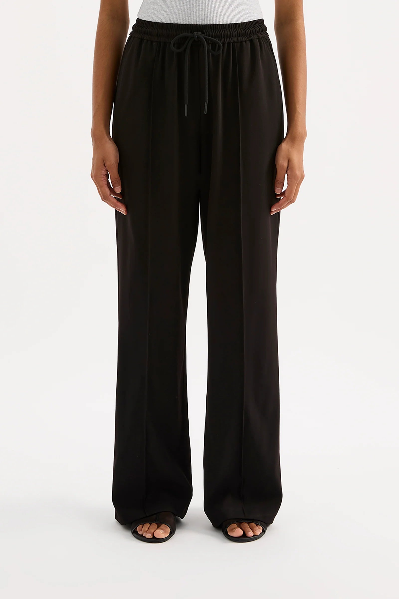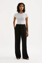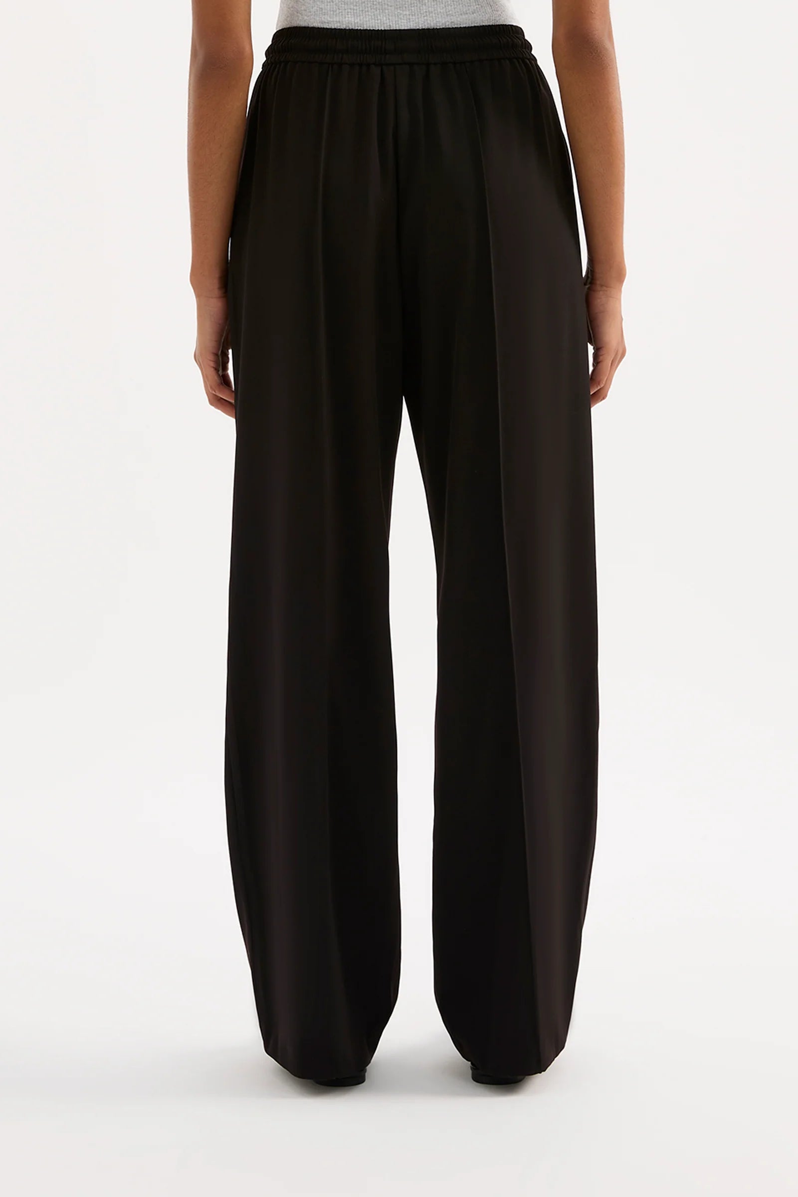 The Rana Pant is made from a classic wool blend suiting fabrication with a smooth hand feel. The silhouette is tailored with a high rise and wide leg. Features include front pleats at waist, concealed trouser hook closure and Nude Lucy branded internal waist banding.