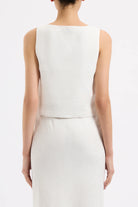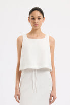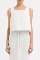 The Thilda Linen Top is made from a premium linen which has been washed for a soft, breathable hand feel. The silhouette is a relaxed a-line shape which finishes above the hips. Features include a scoop neckline and small slits at side seam. This top is fully lined.