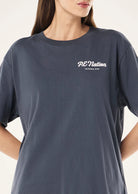 The Formation Tee 2.0 in Marine Blue is made from a lush 100% heavyweight cotton jersey, this tee features an relaxed silhouette and a P.E Nation seasonal graphic print on front and back. The ideal lounging piece, style yours with track pants or bike shorts.