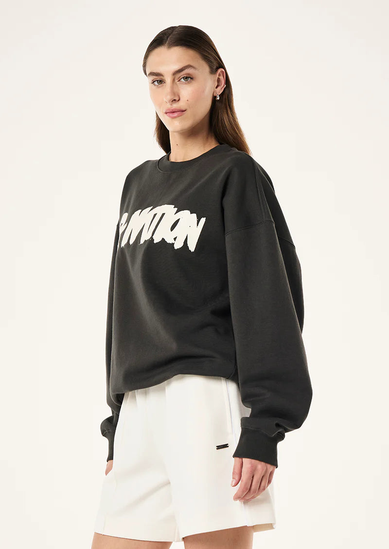 The Frontline Sweat in Asphalt is an oversized fit crew neck sweater is designed in our luxe 100% organic cotton peach fleece and features a custom P.E Nation graphic print at centre front. For the complete set, style this sweat with shorts or your favourite P.E Legging.