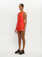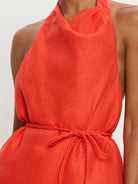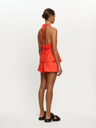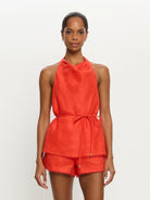 The Tara Top is crafted in a premium European Flax™ linen. The Tara Top features a high neckline with a soft cowl drape, a low open back and a scalloped hem, complete with a removable waist tie for versatile styling. Designed with refined femininity and ease, it's a modern silhouette that moves effortlessly from day to evening. Pair back with the Tara Short to complete the look.